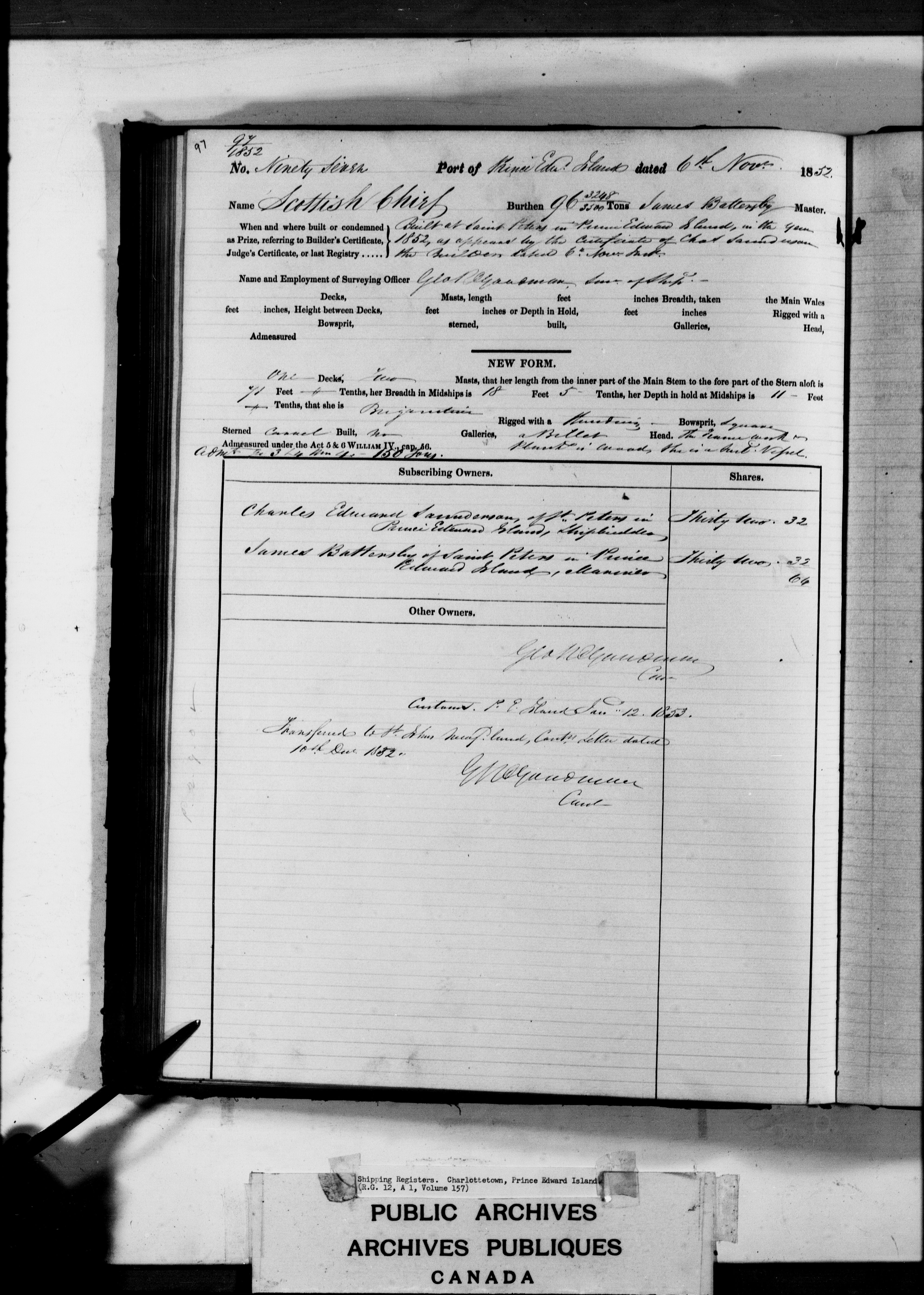 Charlottetown [Prince Edward Island] Registrar of Shipping - 3177