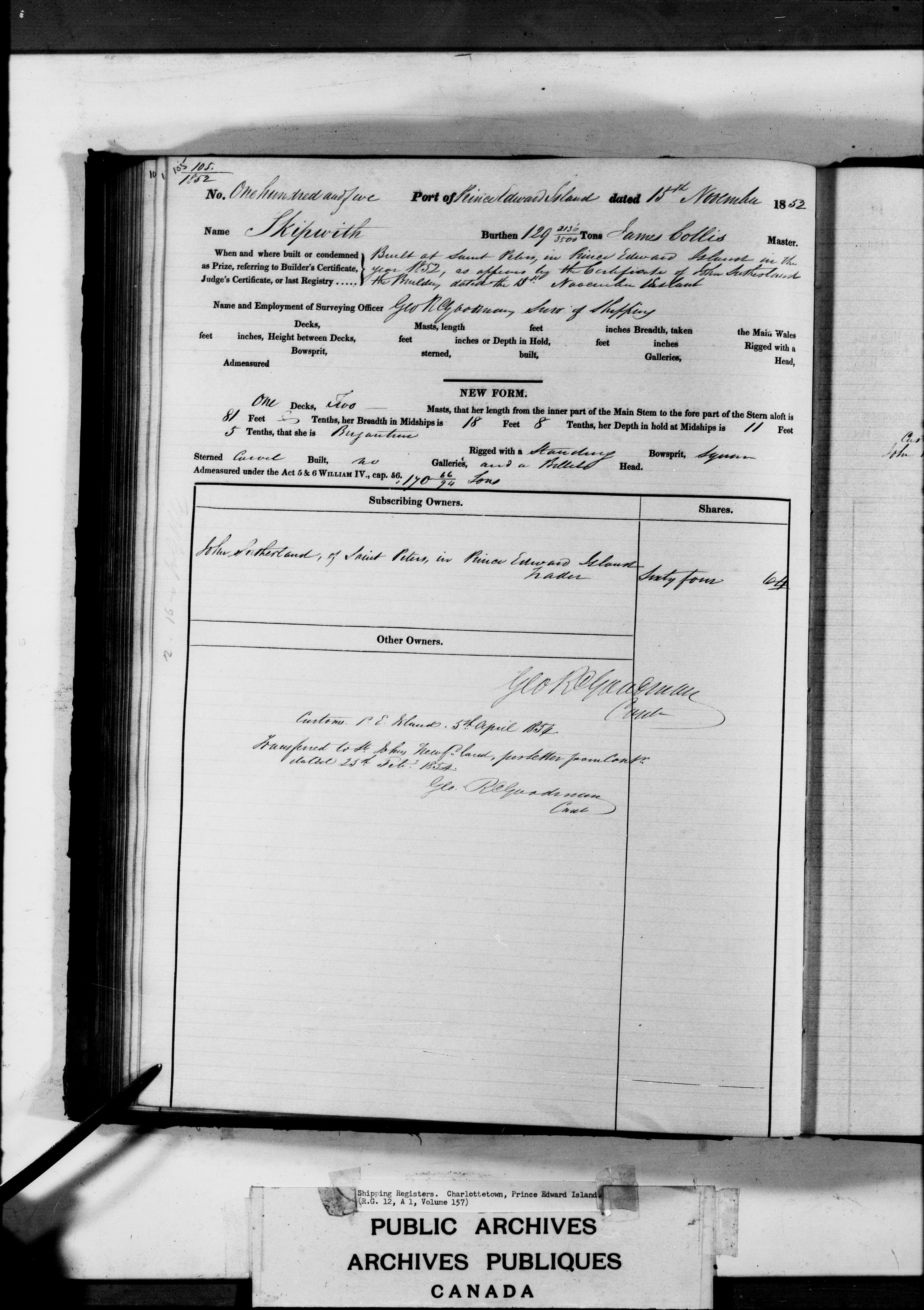 Charlottetown [Prince Edward Island] Registrar of Shipping - 3177