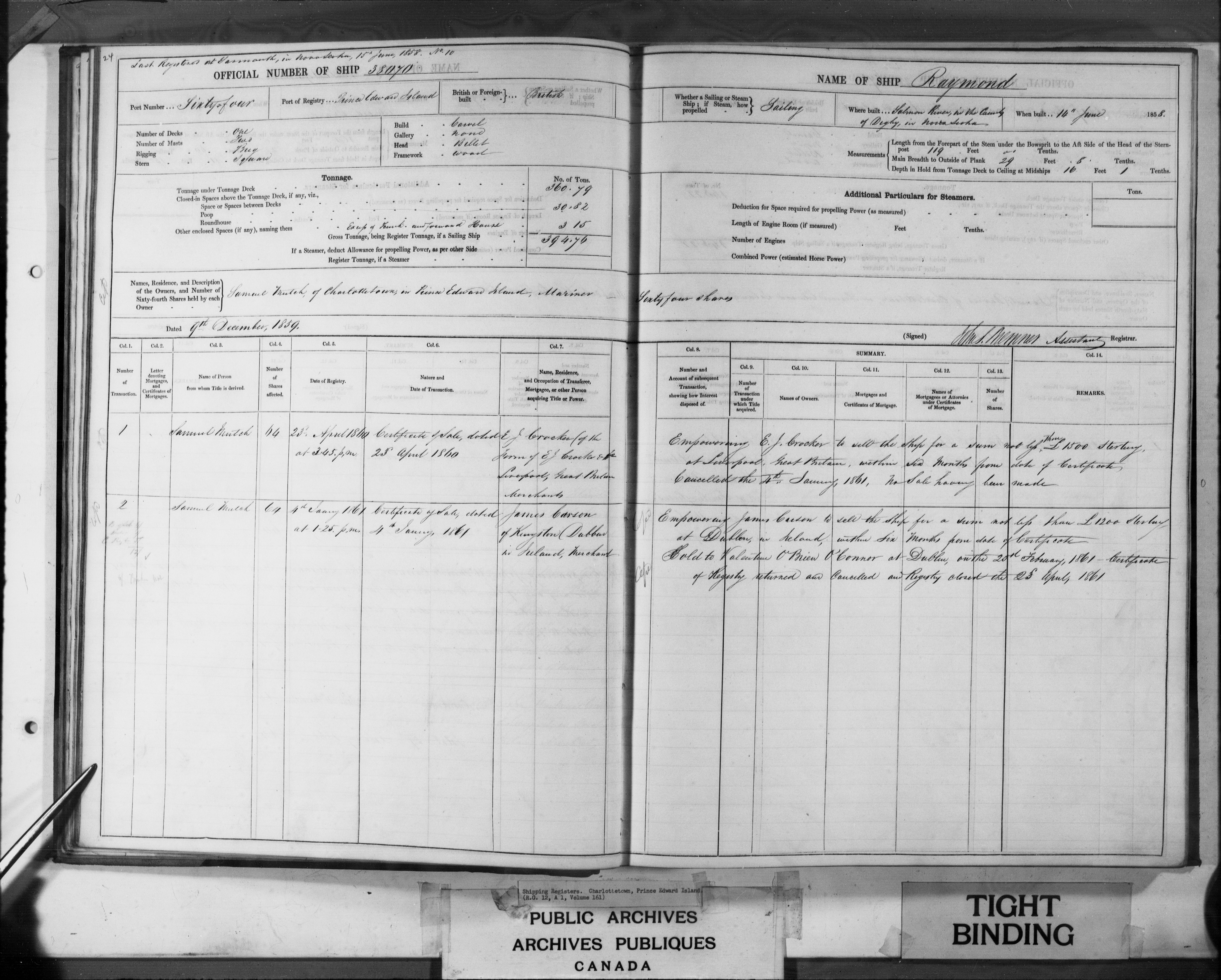 Charlottetown [Prince Edward Island] Registrar of Shipping - 3178