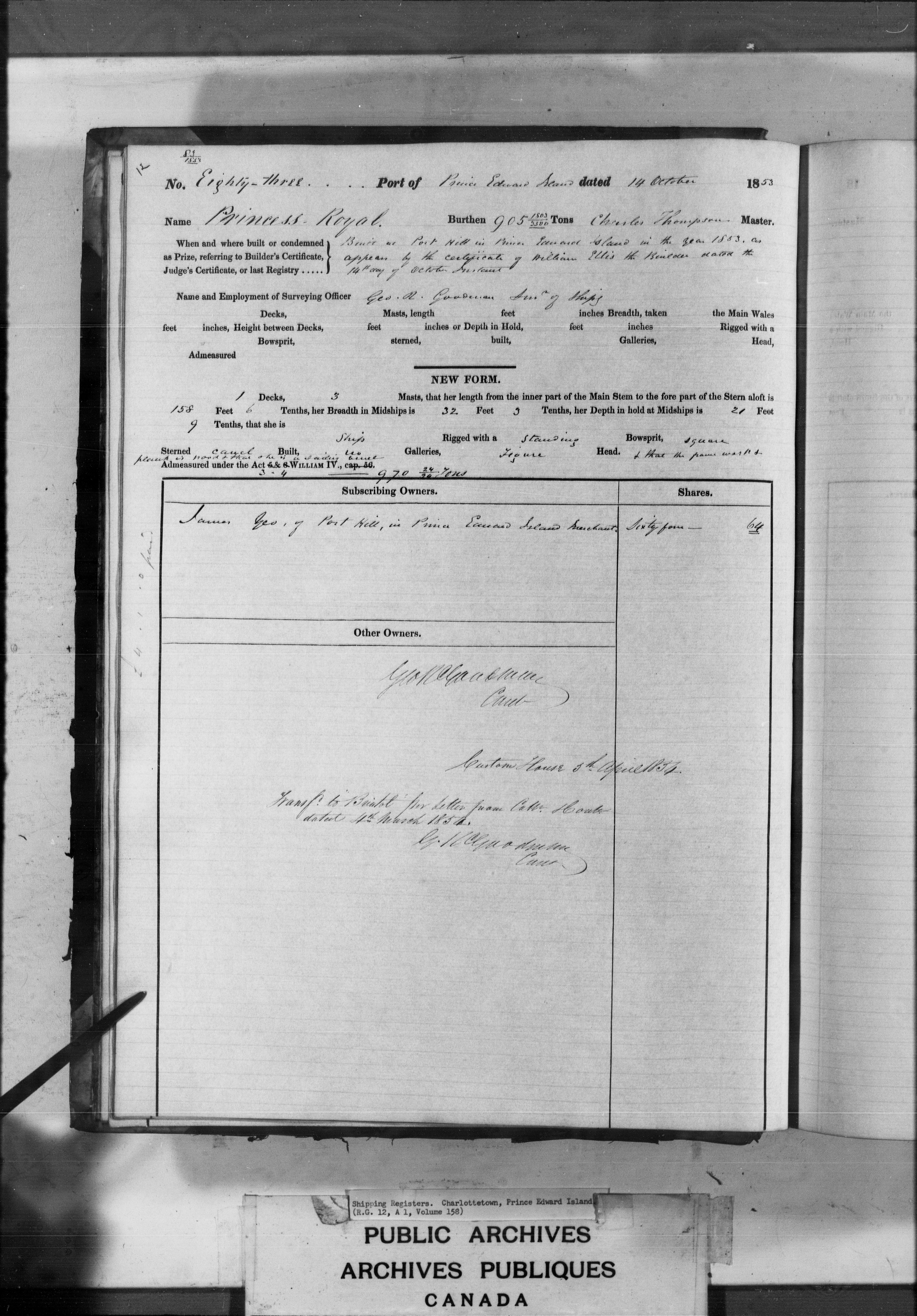 Charlottetown [Prince Edward Island] Registrar of Shipping - 3178