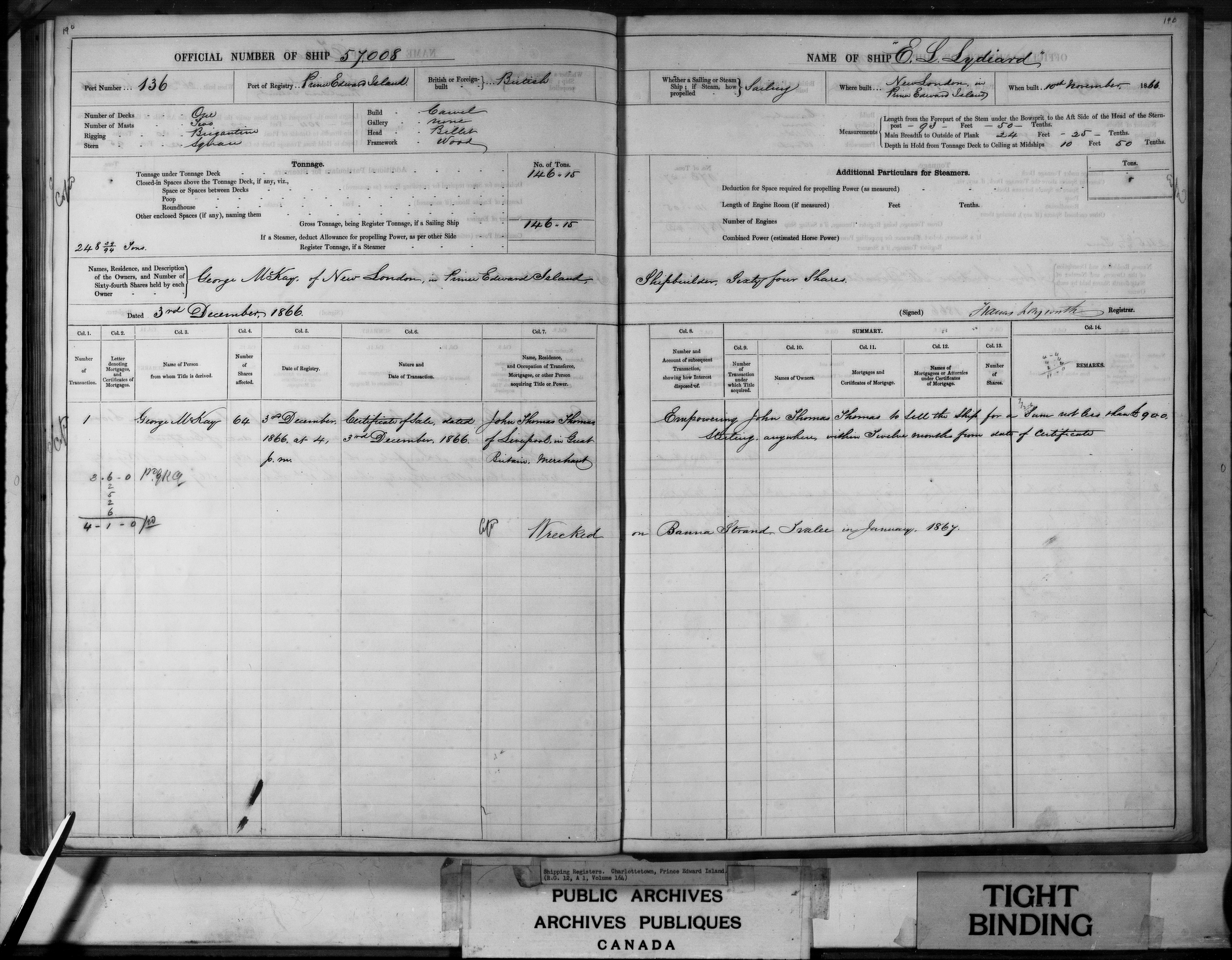Charlottetown [Prince Edward Island] Registrar of Shipping - 3180