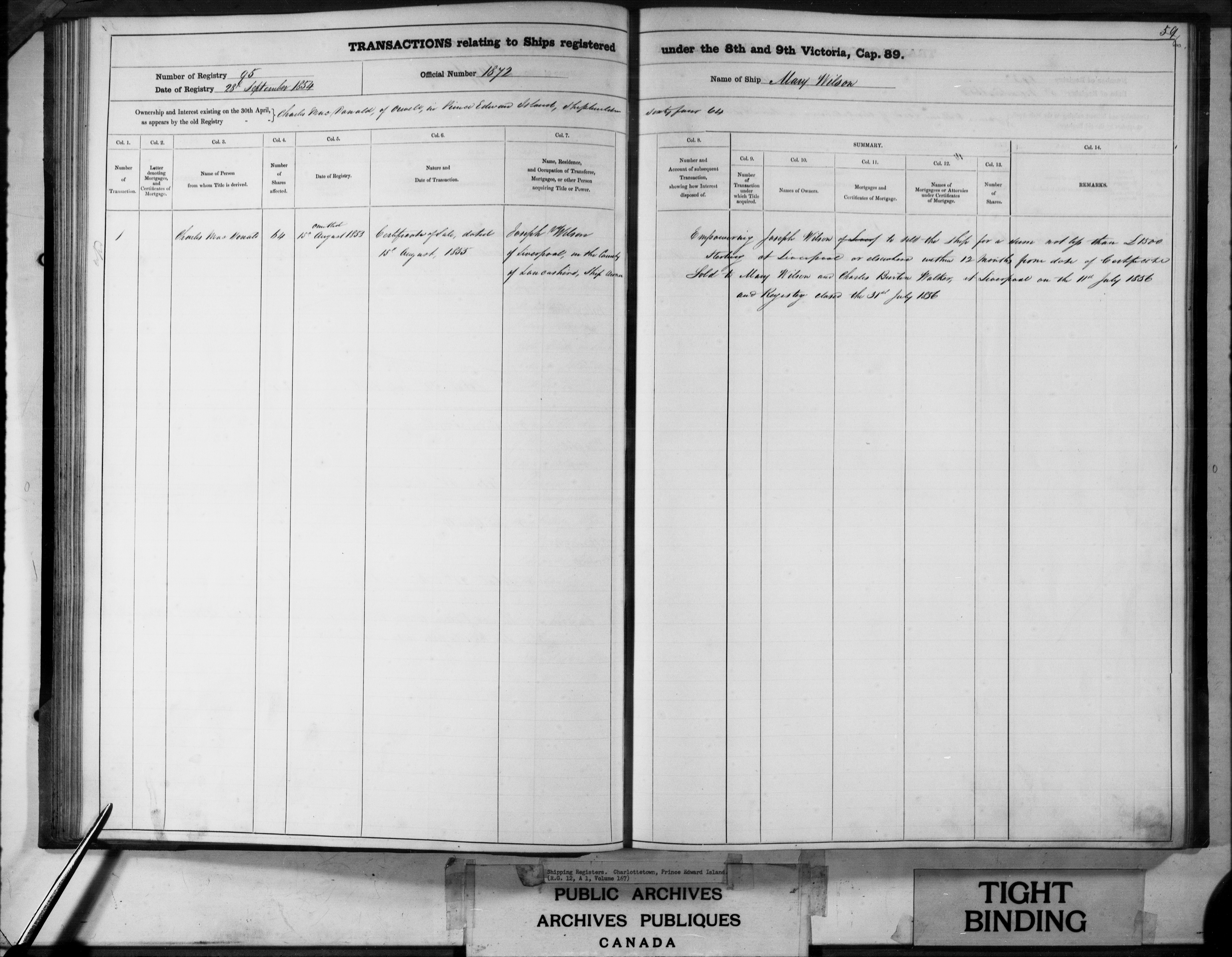 Charlottetown [Prince Edward Island] Registrar of Shipping - 3180