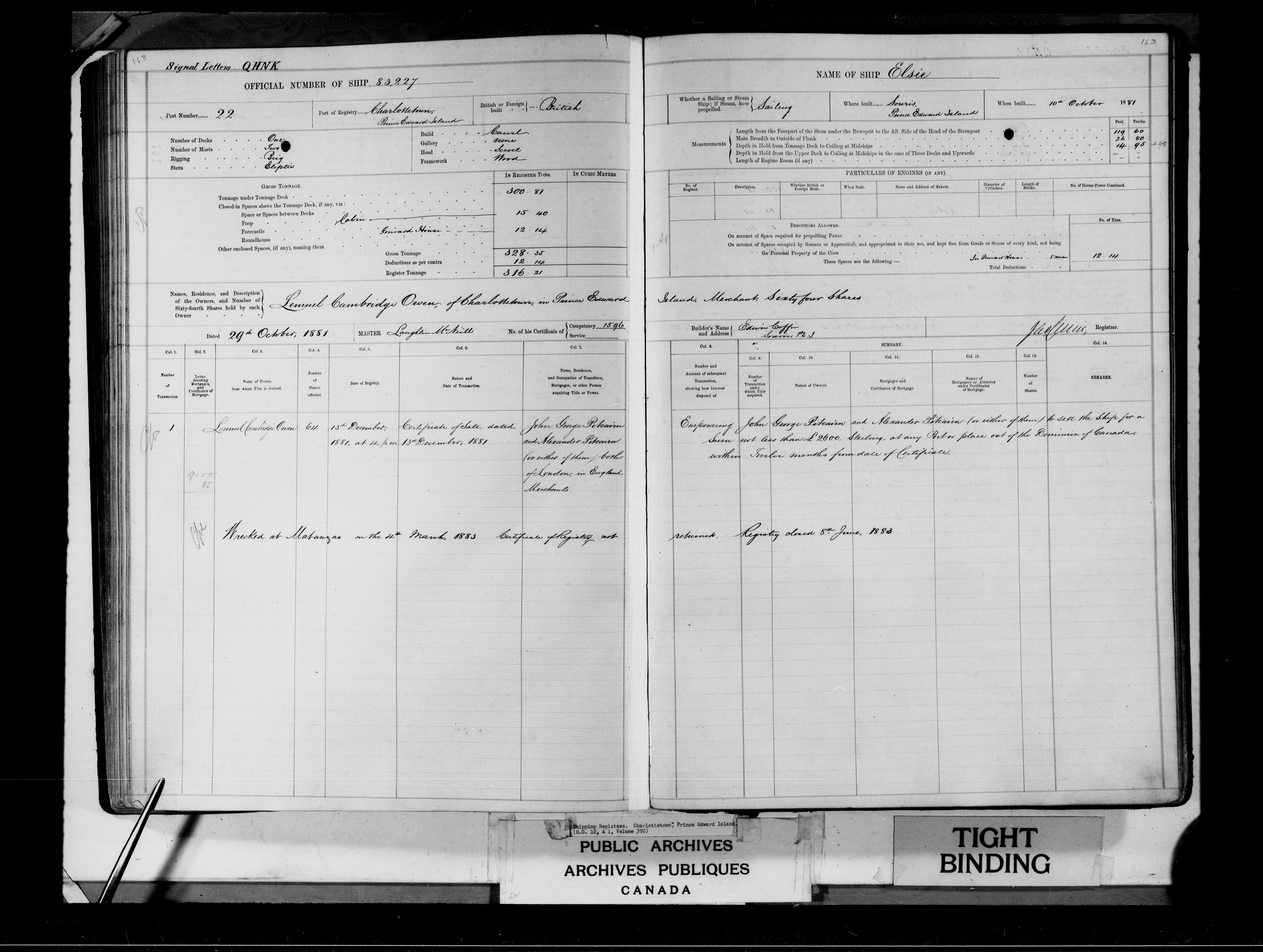 Charlottetown [Prince Edward Island] Registrar of Shipping - 3182
