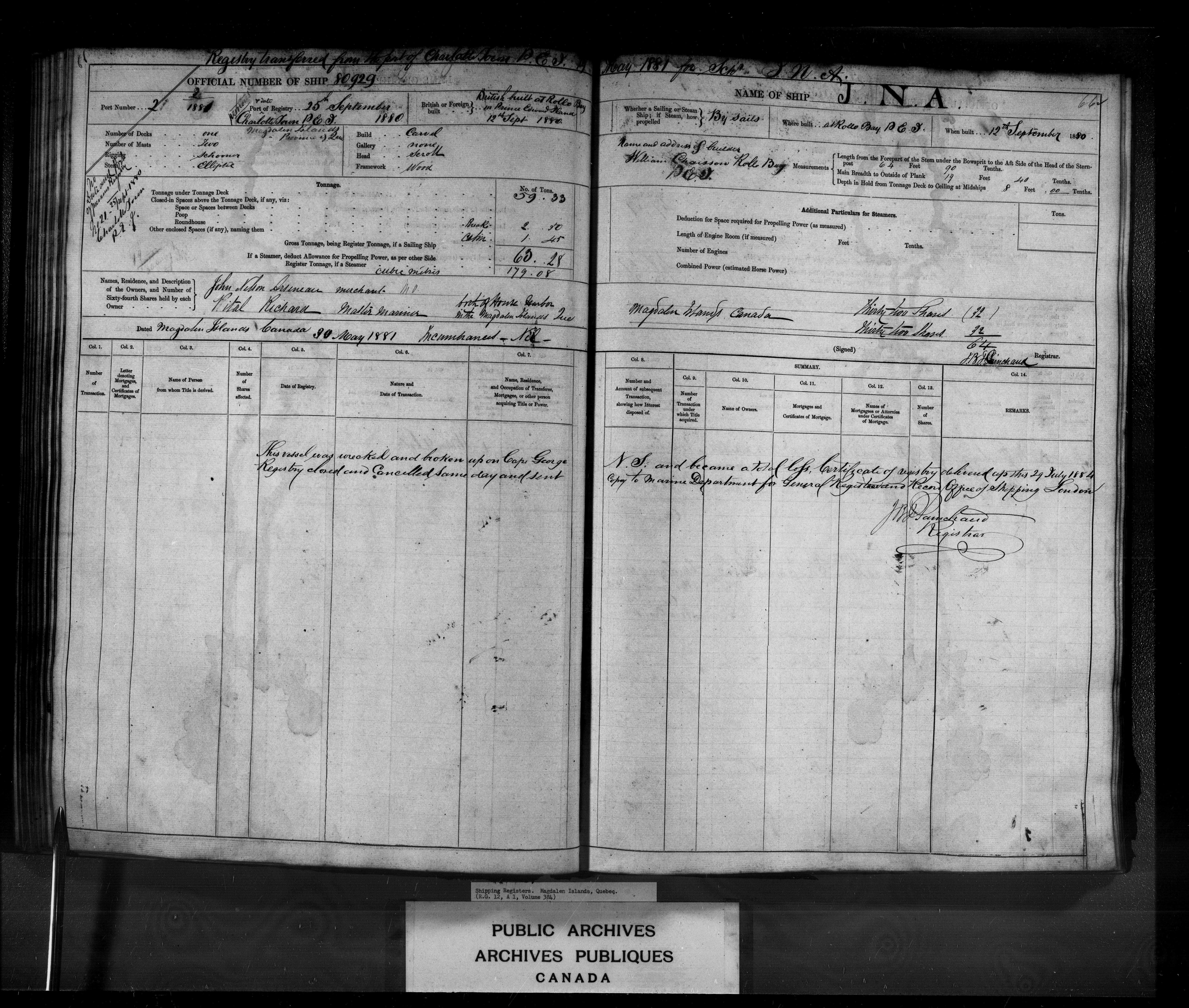 Saint John [New Brunswick] Registrar of Shipping, 1824-1943 : C-3188