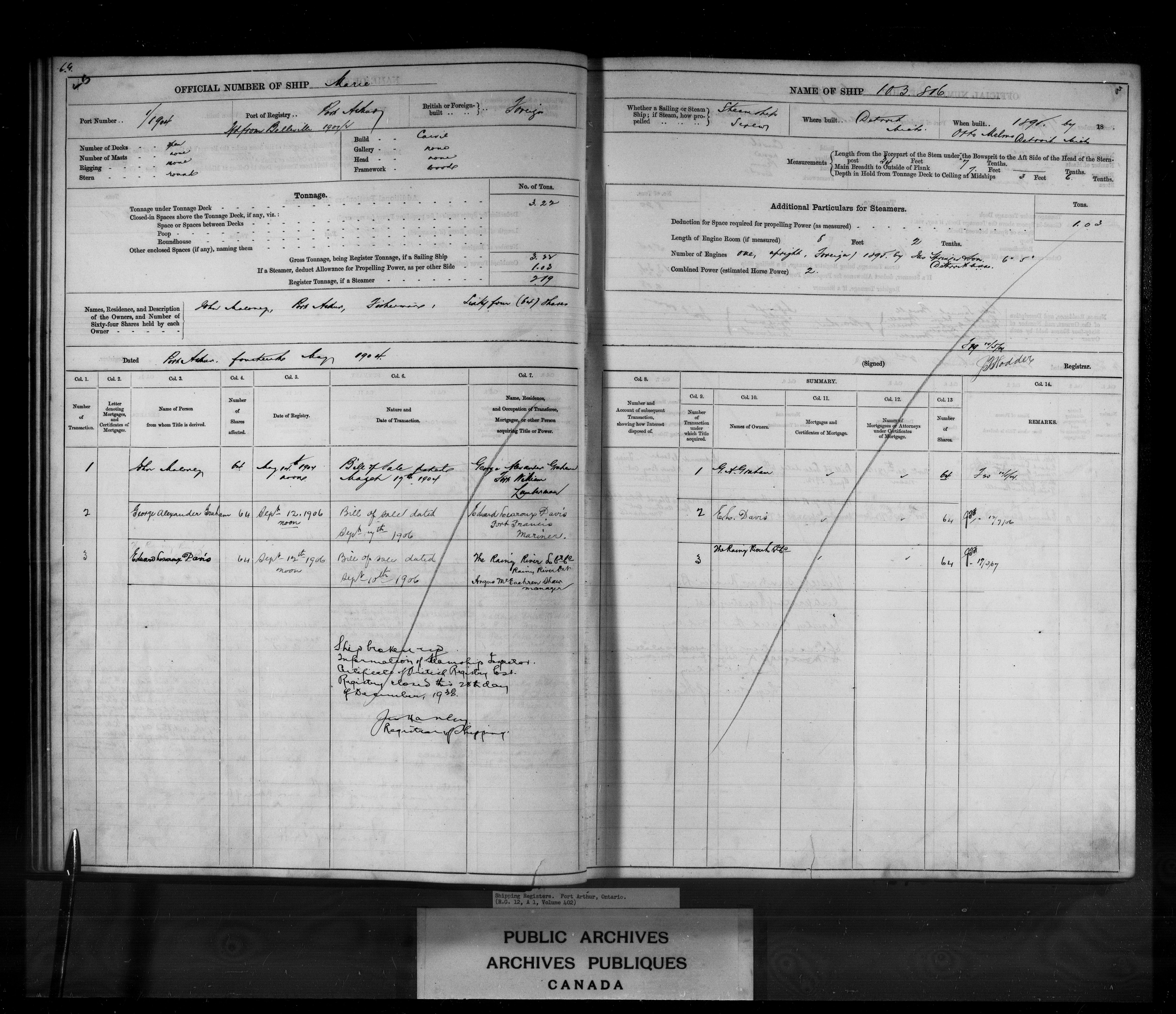 Saint John [New Brunswick] Registrar of Shipping, 1824-1943 : C-3188