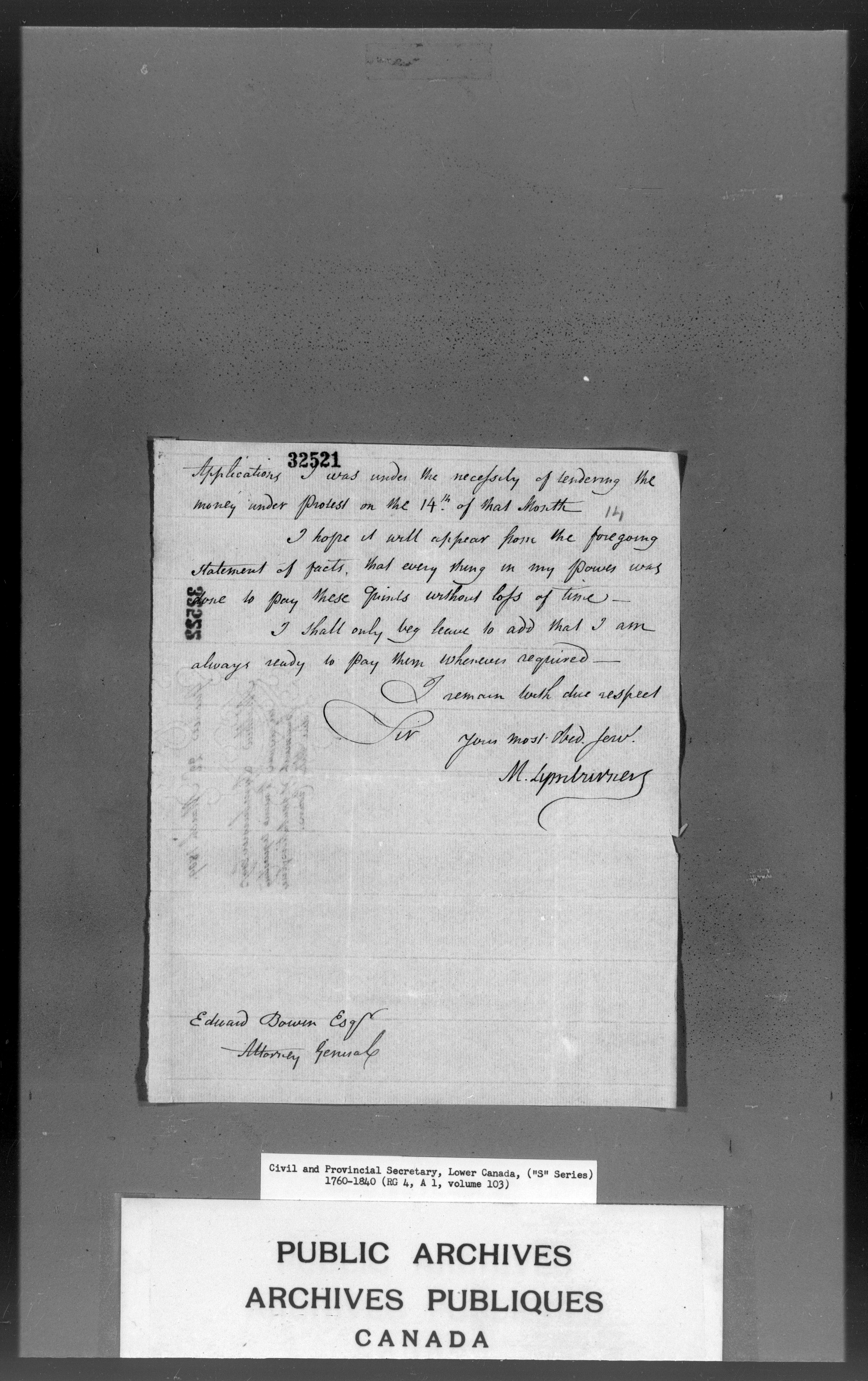 Civil Secretary's correspondence : A1 -S Series, Quebec and Lower Canada, 1760-1840 - 3194