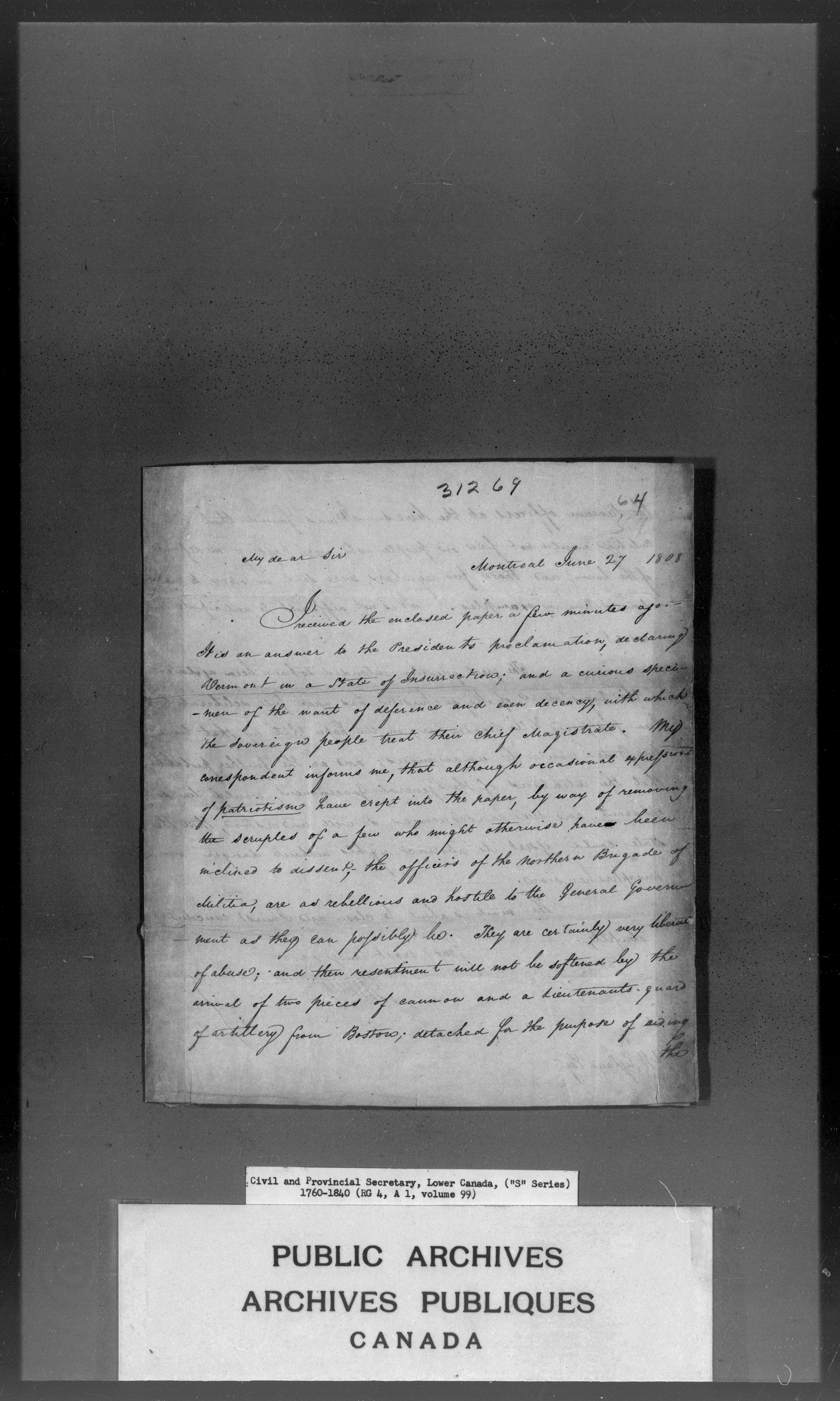 Civil Secretary's correspondence : A1 -S Series, Quebec and Lower Canada, 1760-1840 - 3194