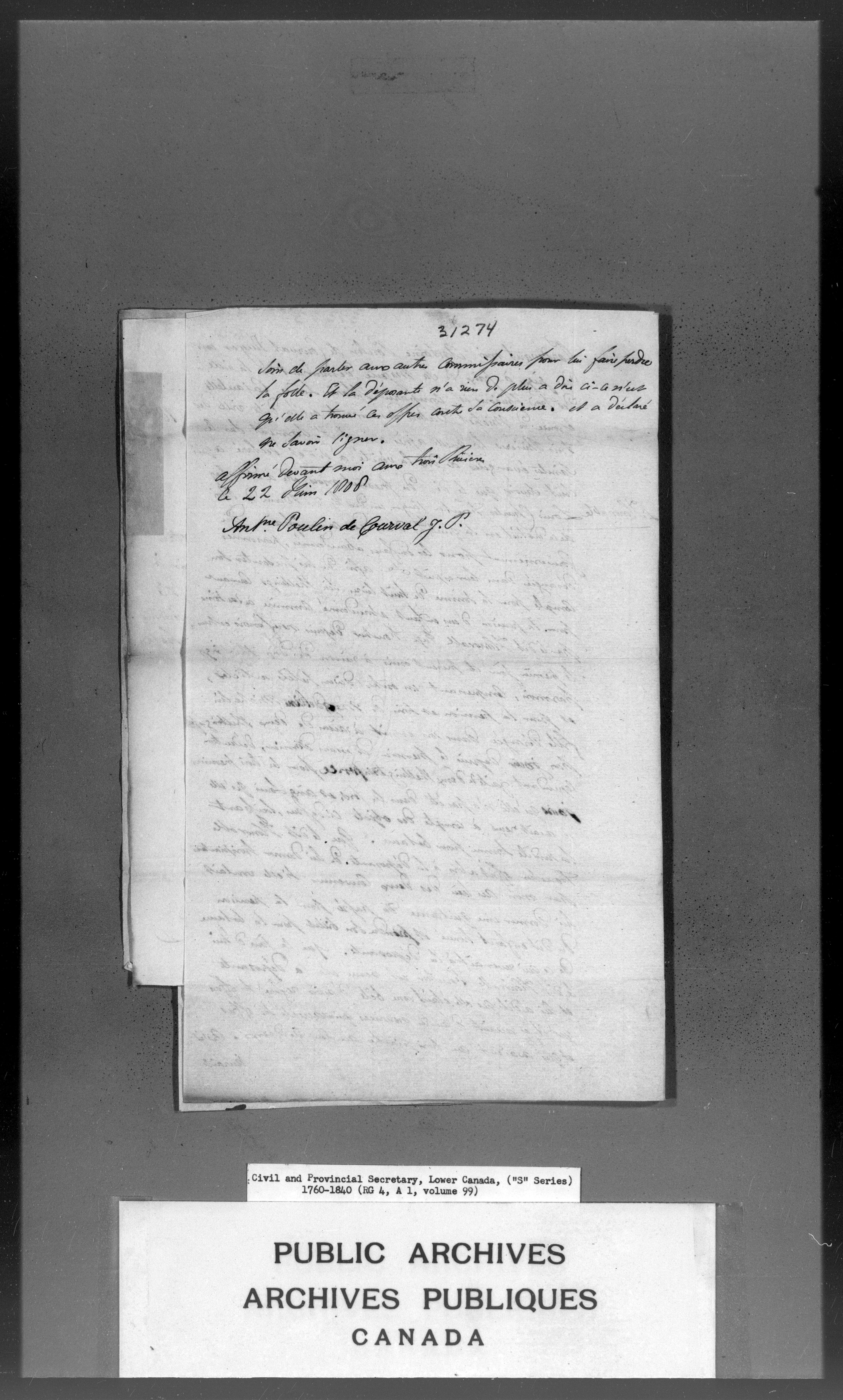 Civil Secretary's correspondence : A1 -S Series, Quebec and Lower Canada, 1760-1840 - 3194