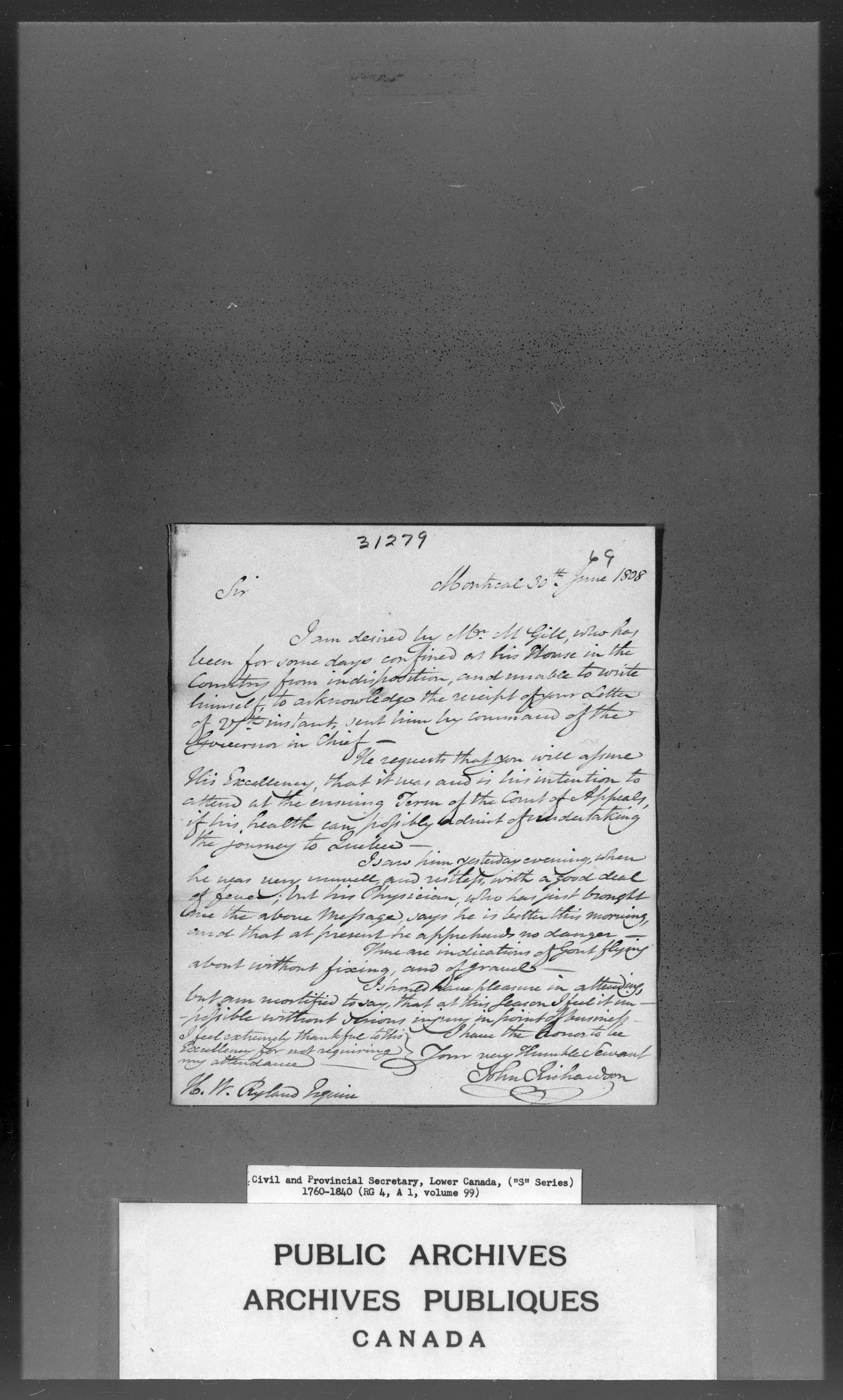 Civil Secretary's correspondence : A1 -S Series, Quebec and Lower Canada, 1760-1840 - 3194