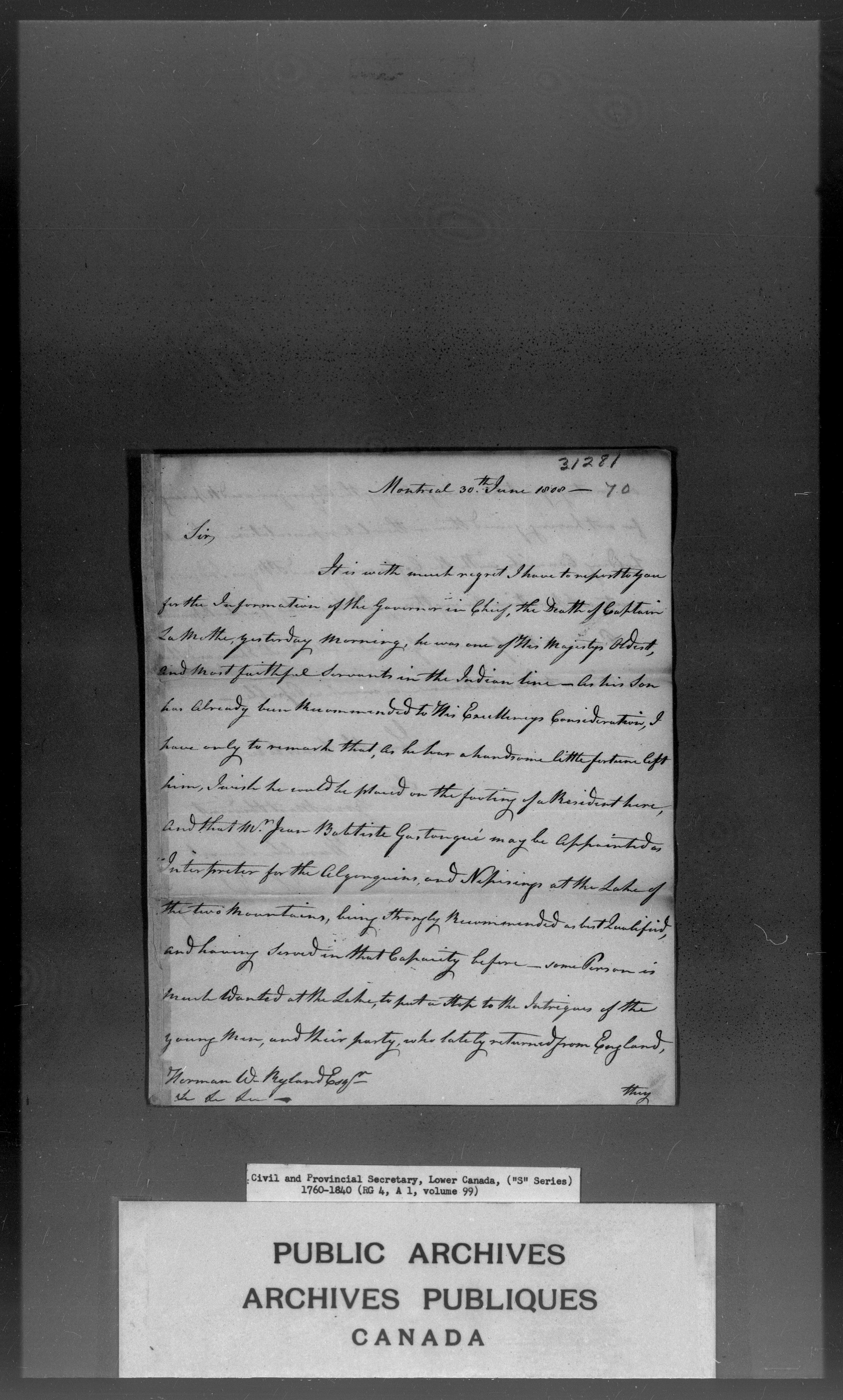 Civil Secretary's correspondence : A1 -S Series, Quebec and Lower Canada, 1760-1840 - 3194