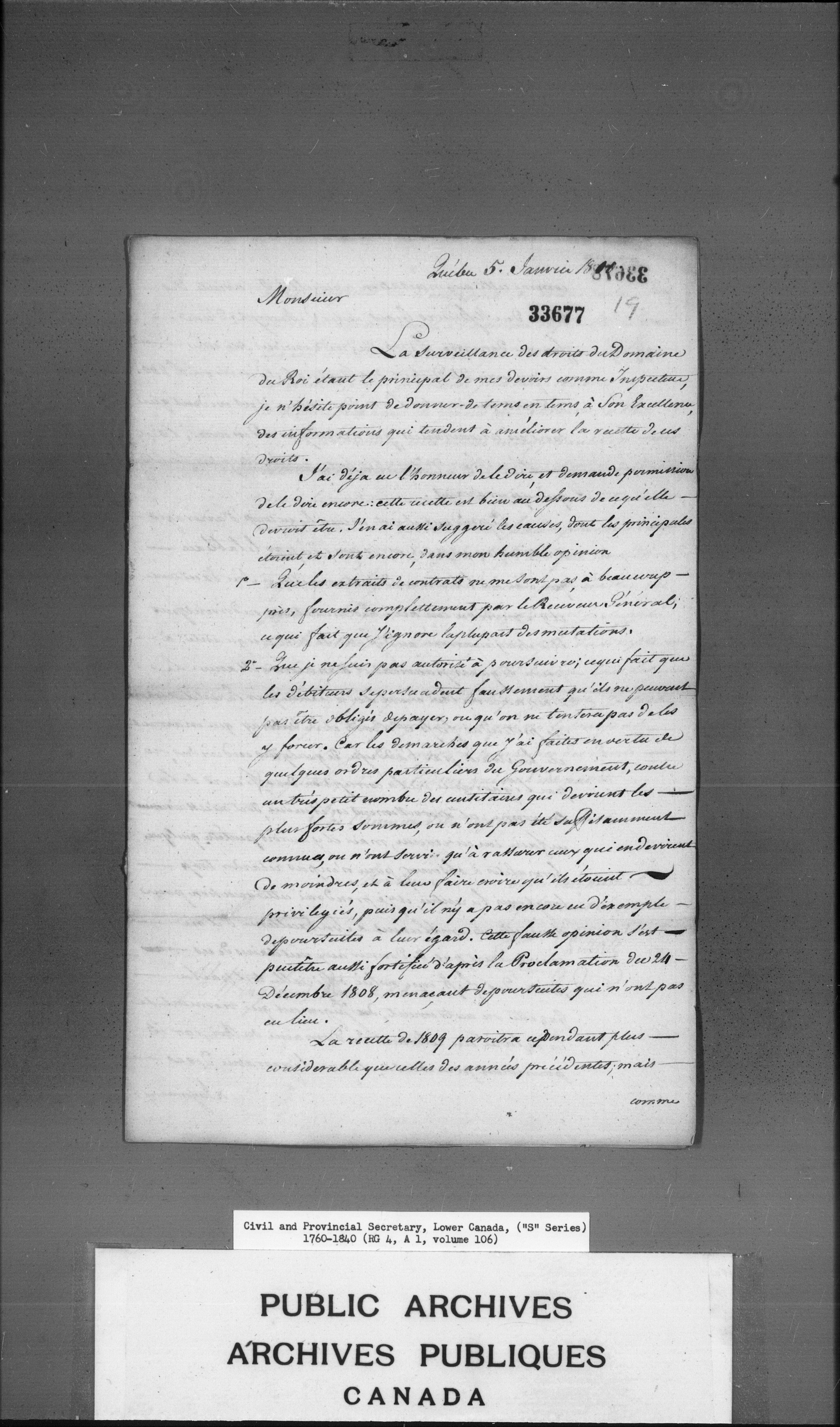 Civil Secretary's correspondence : A 1 - S Series : Quebec and Lower Canada : C-3195