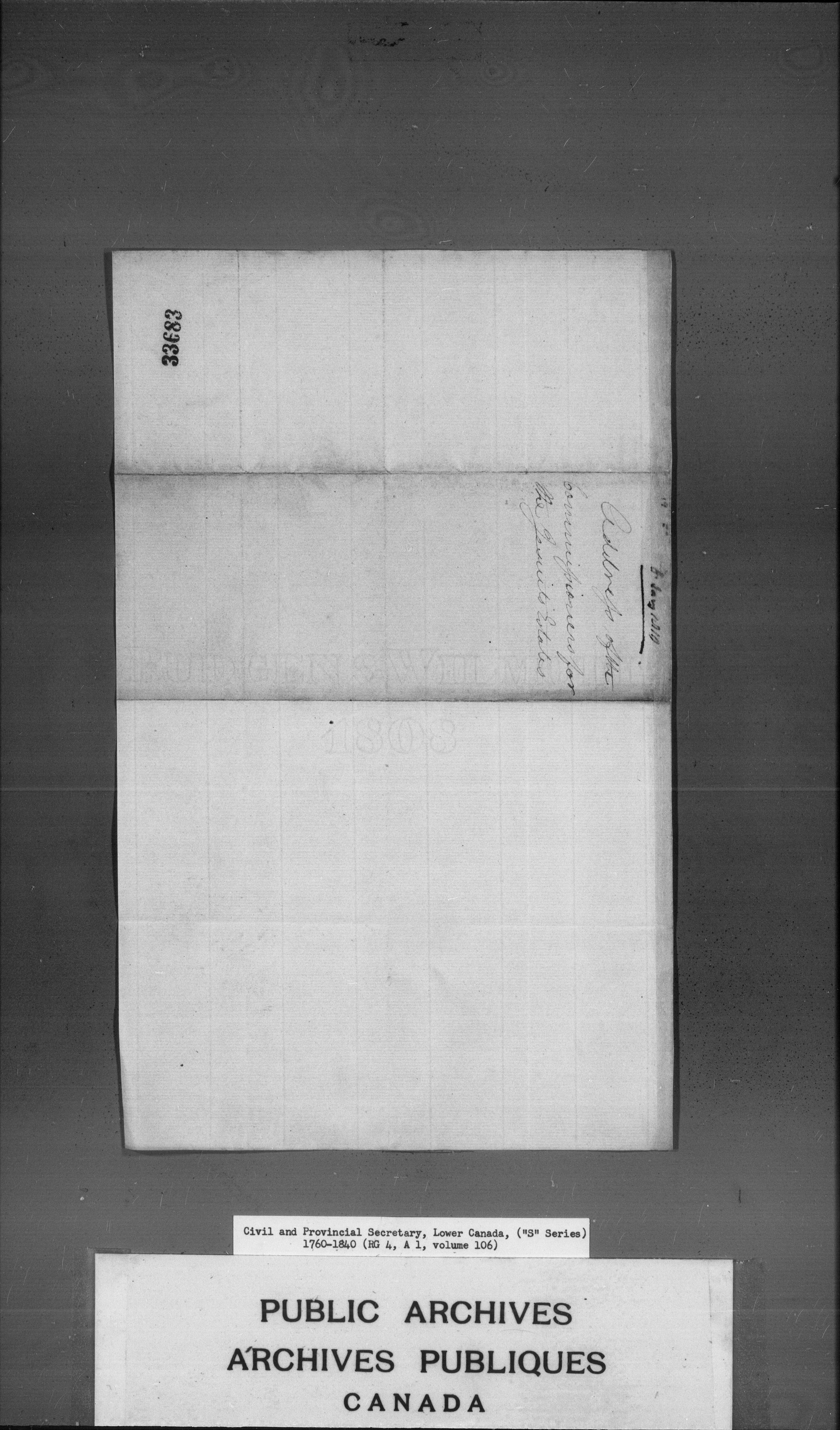 Civil Secretary's correspondence : A 1 - S Series : Quebec and Lower Canada : C-3195