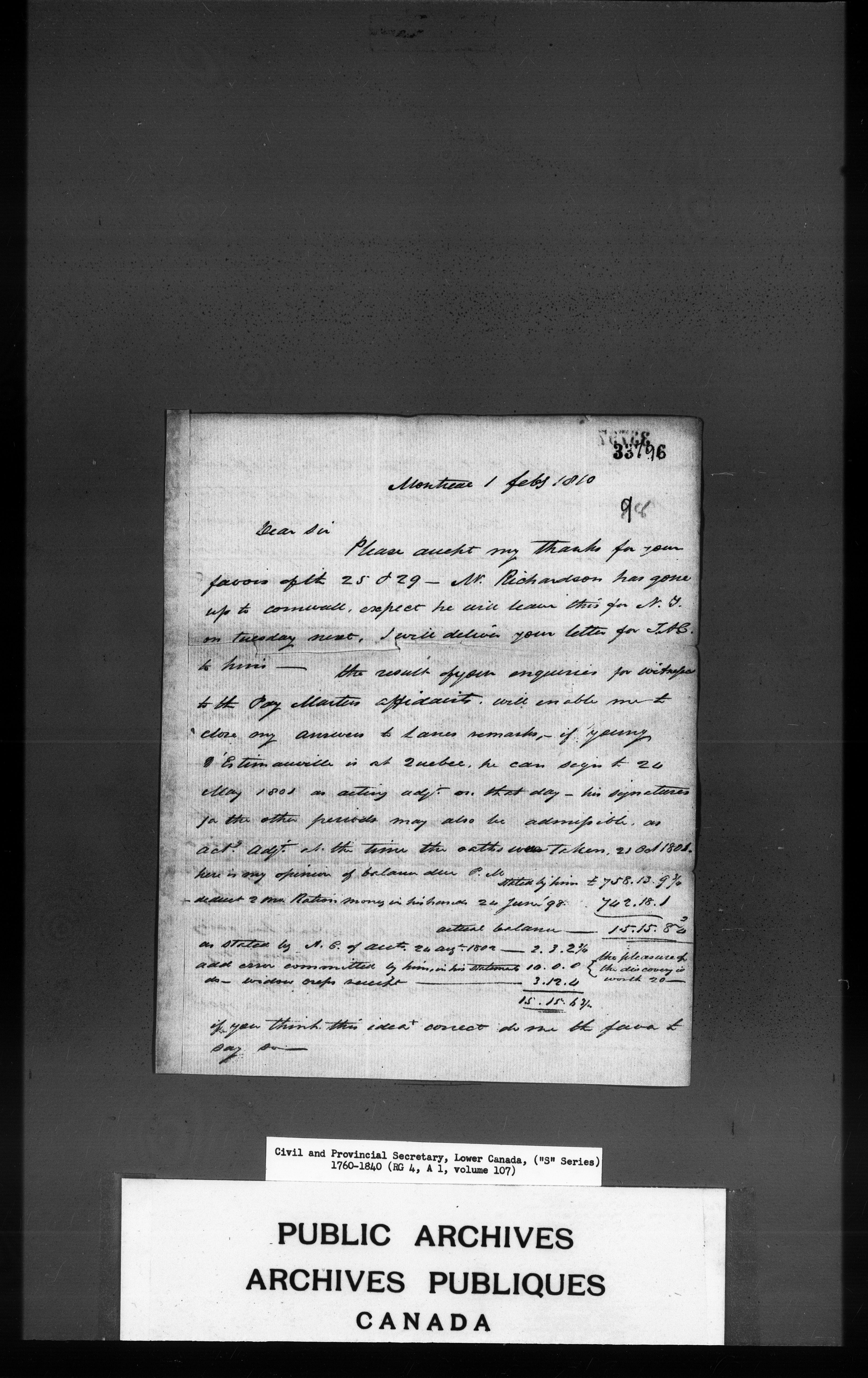Civil Secretary's correspondence : A1 -S Series, Quebec and Lower Canada, 1760-1840 - 3196