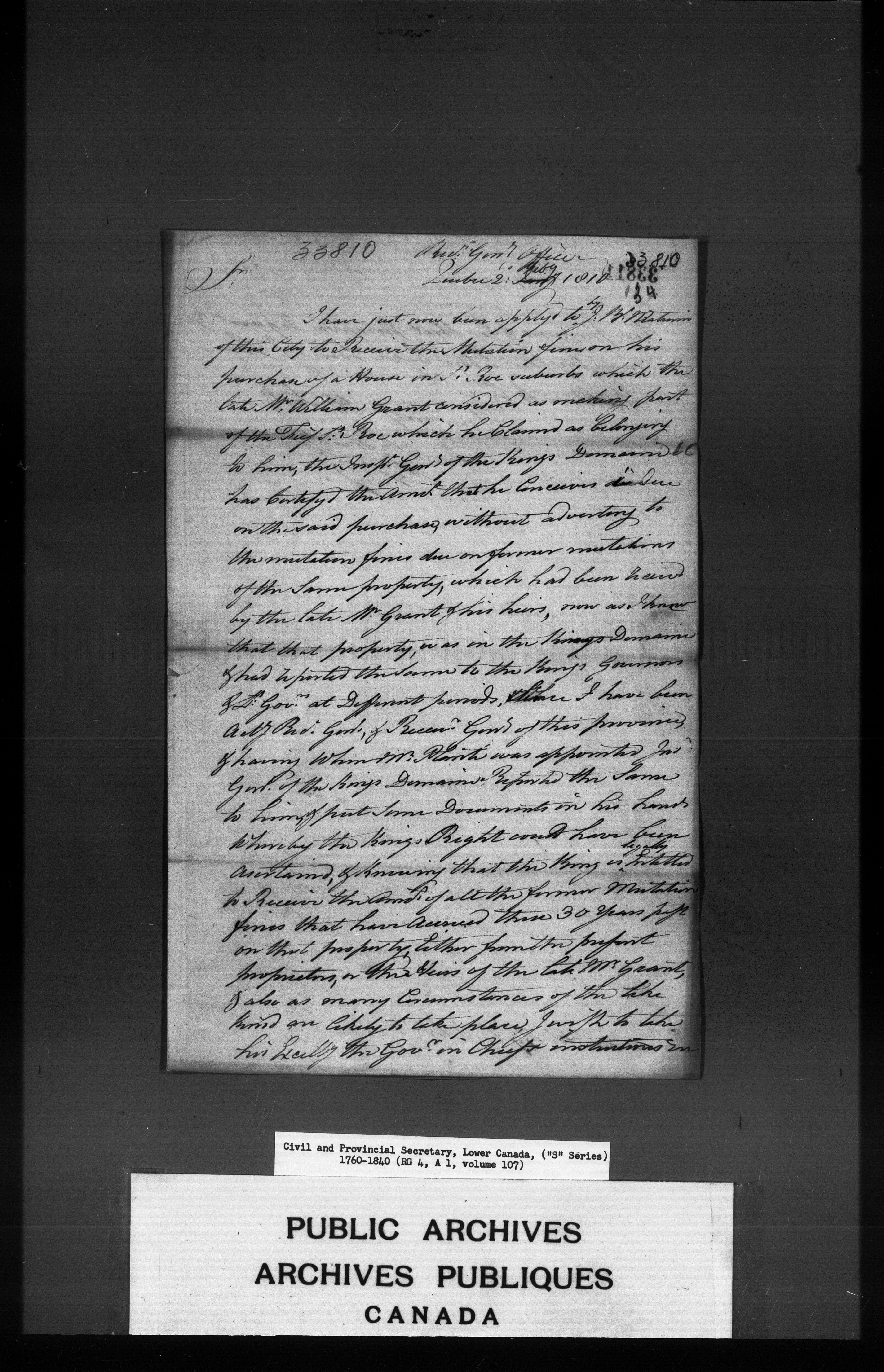 Civil Secretary's correspondence : A1 -S Series, Quebec and Lower Canada, 1760-1840 - 3196
