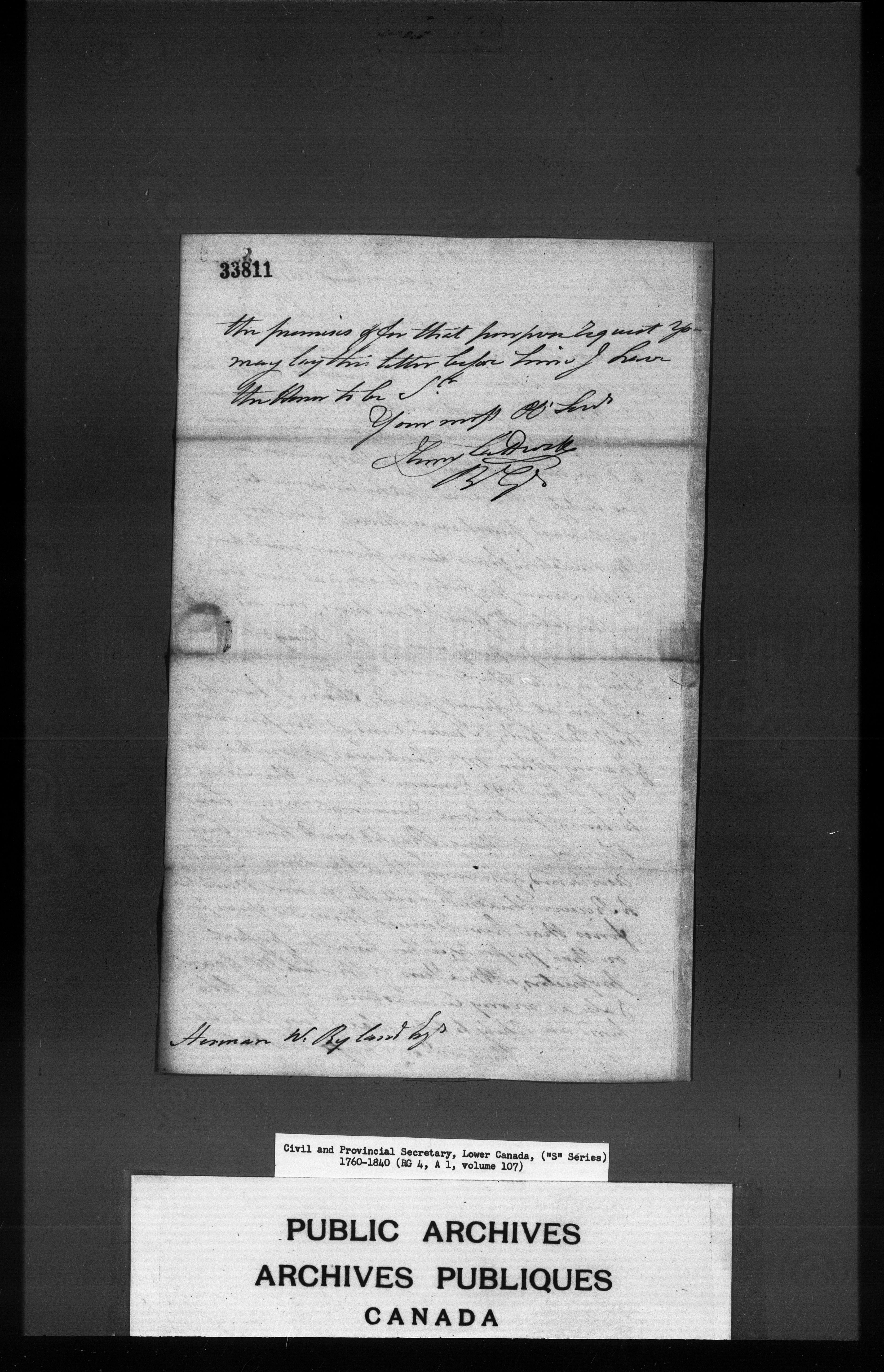 Civil Secretary's correspondence : A 1 - S Series : Quebec and Lower Canada : C-3196