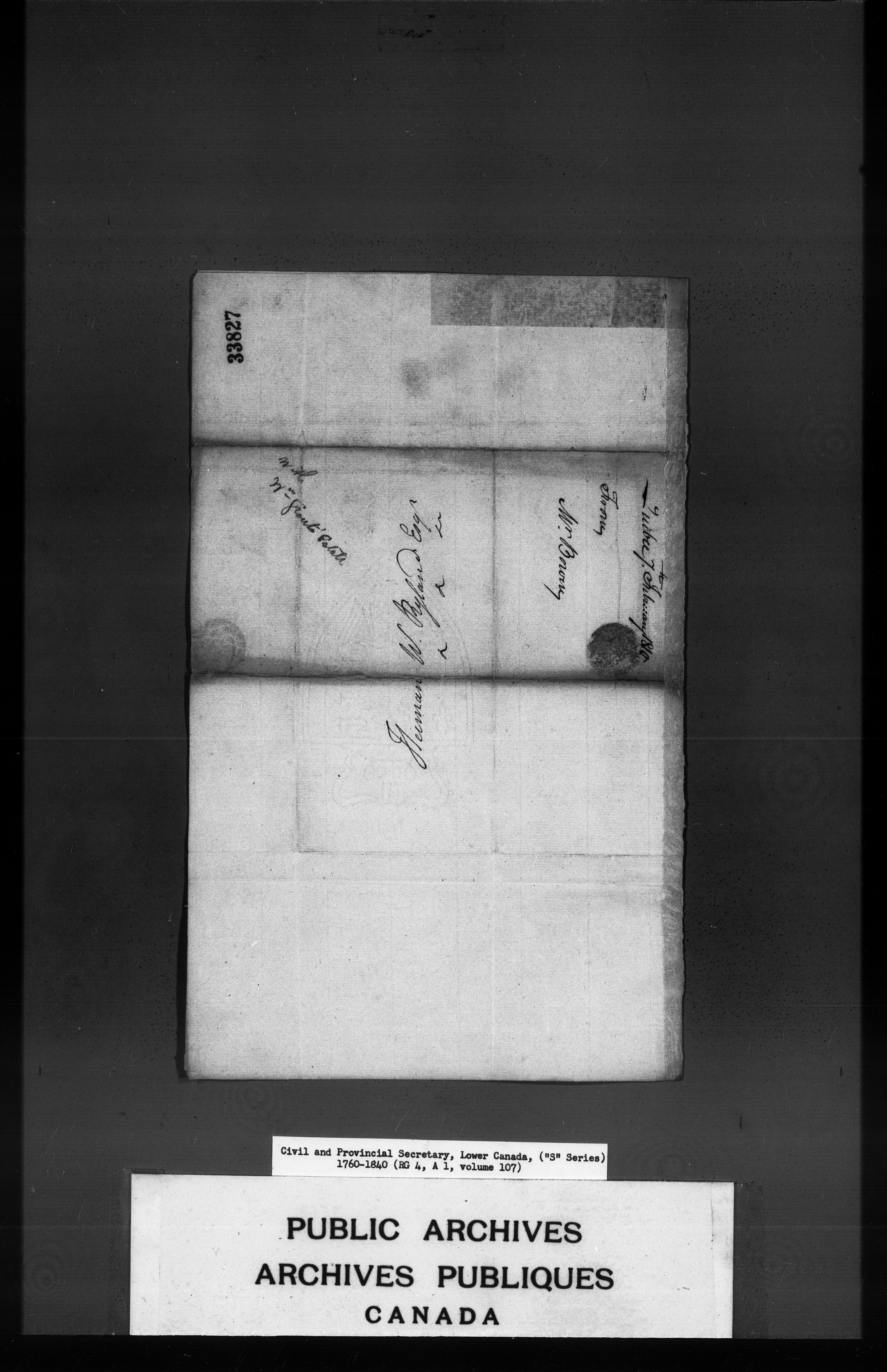 Civil Secretary's correspondence : A 1 - S Series : Quebec and Lower Canada : C-3196