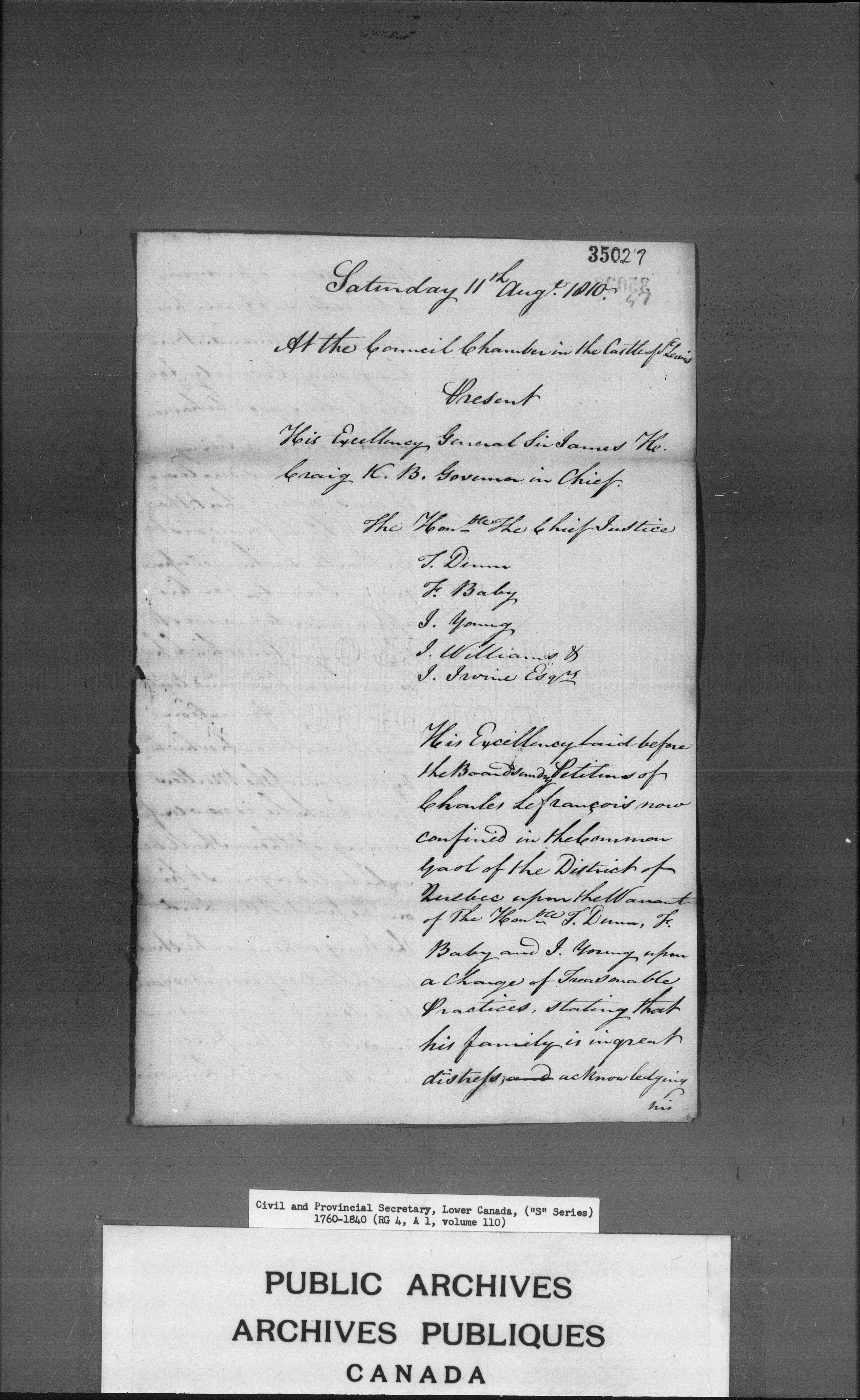 Civil Secretary's correspondence : A1 -S Series, Quebec and Lower Canada, 1760-1840 - 3197