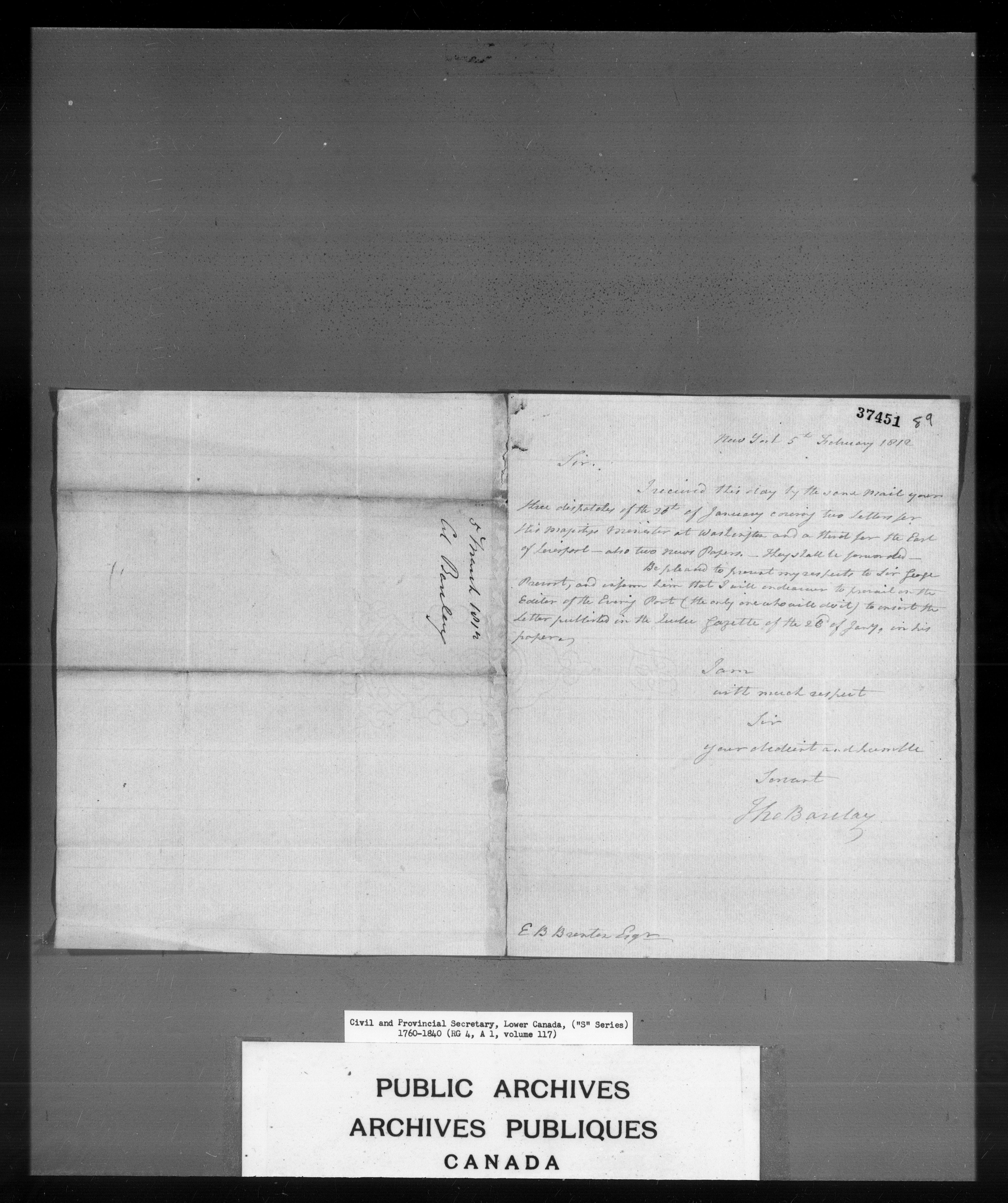Civil Secretary's correspondence : A1 -S Series, Quebec and Lower Canada, 1760-1840 - 3198