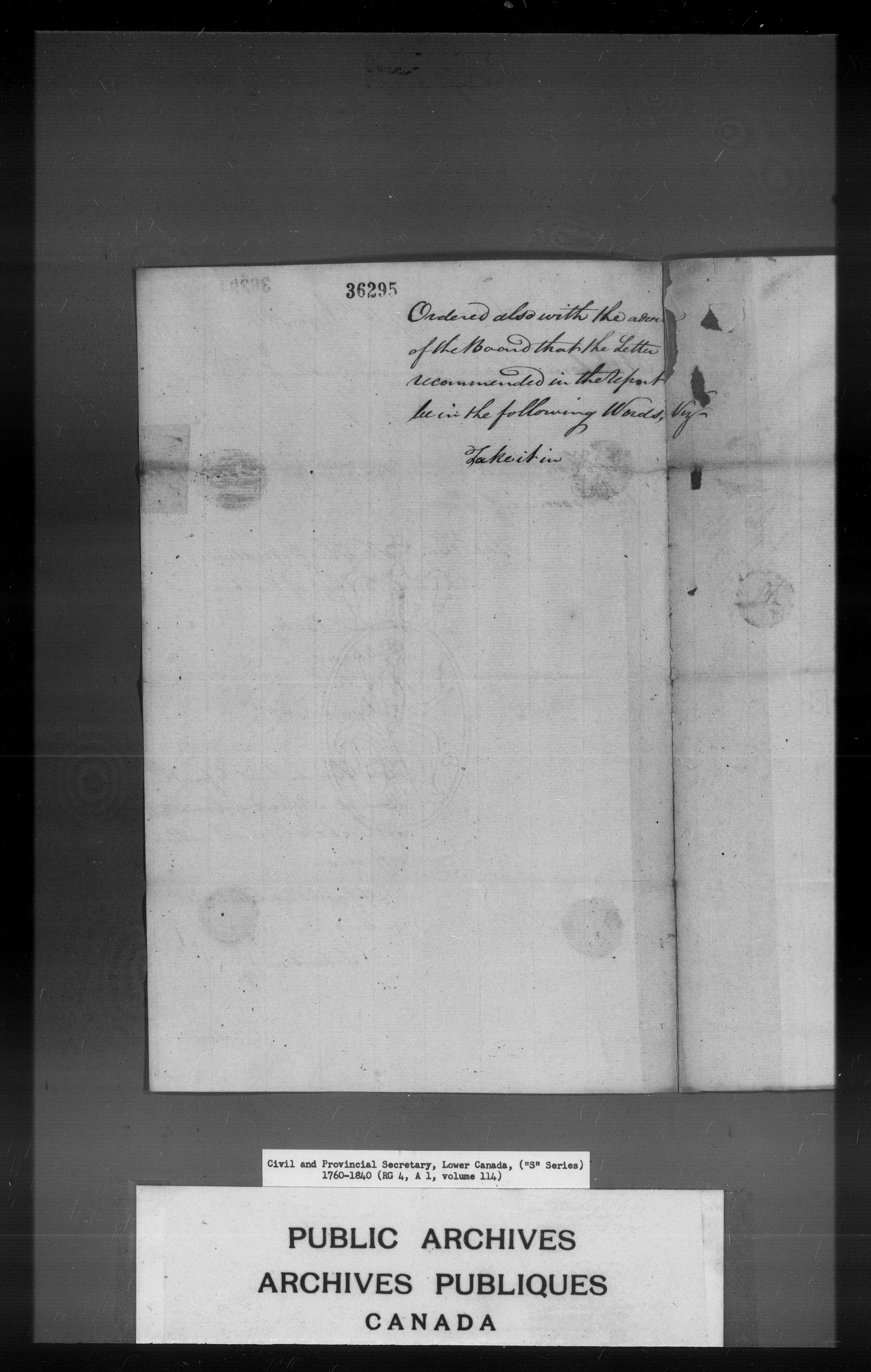 Civil Secretary's correspondence : A1 -S Series, Quebec and Lower Canada, 1760-1840 - 3198