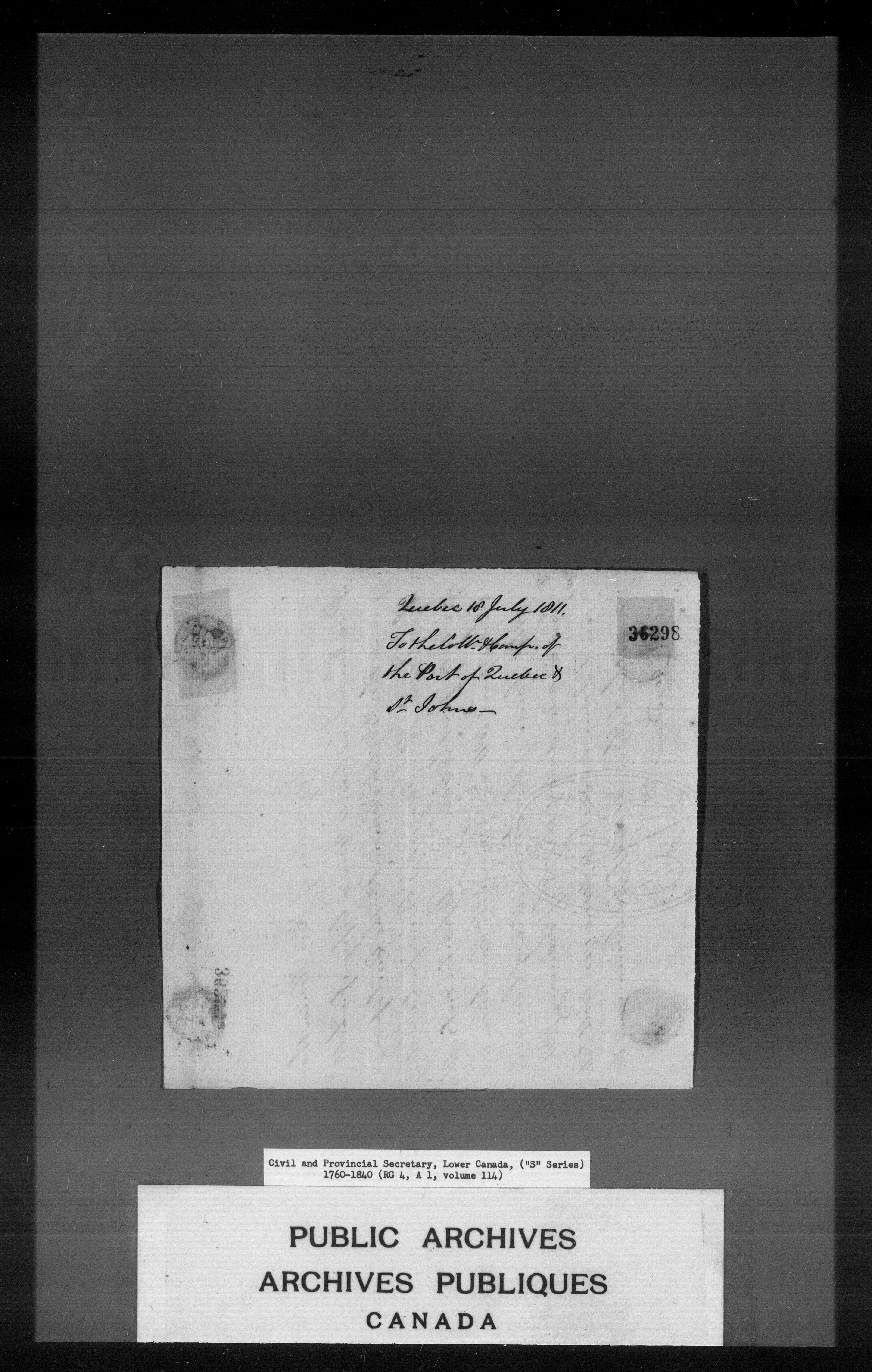 Civil Secretary's correspondence : A1 -S Series, Quebec and Lower Canada, 1760-1840 - 3198