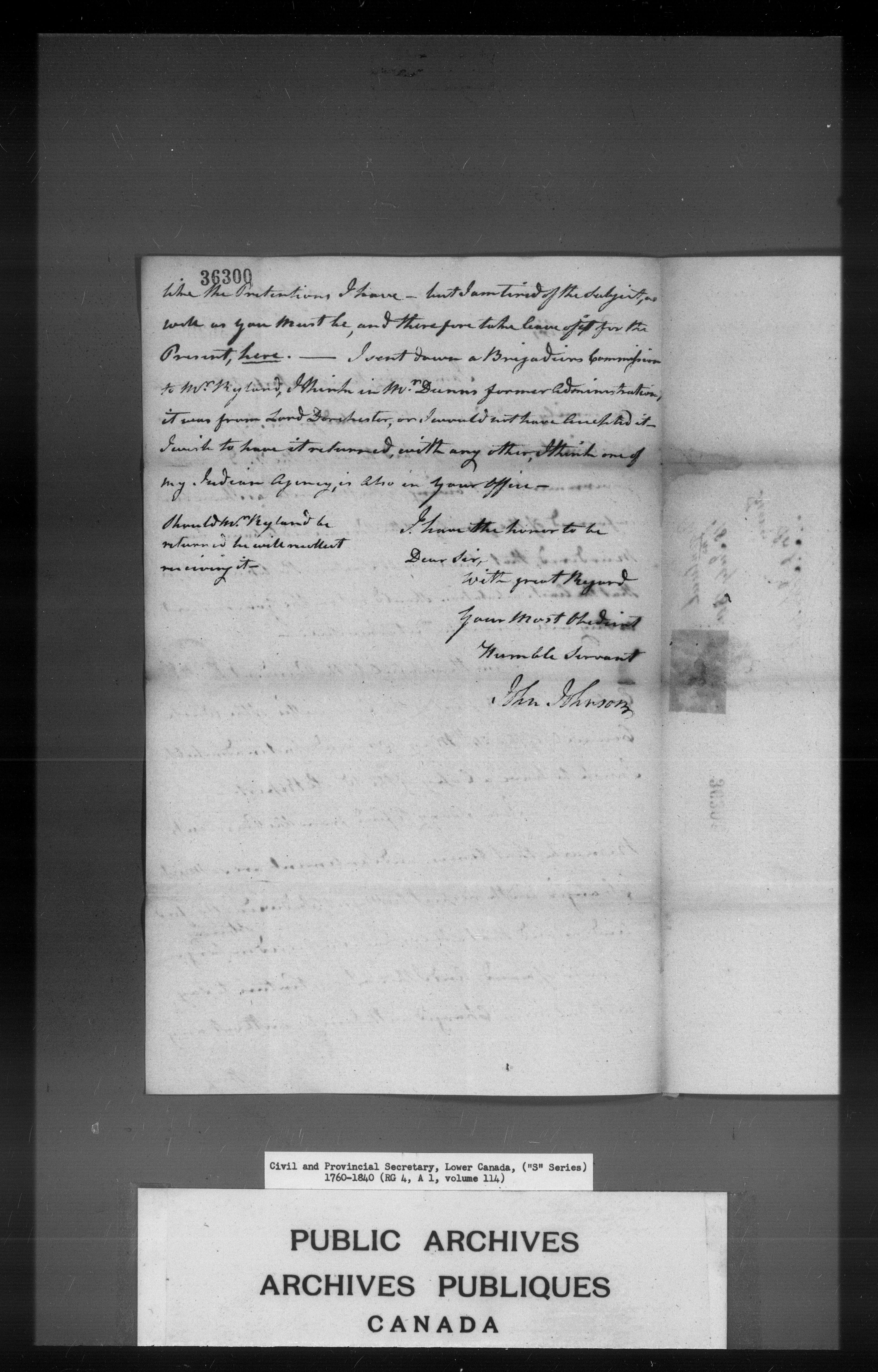 Civil Secretary's correspondence : A1 -S Series, Quebec and Lower Canada, 1760-1840 - 3198