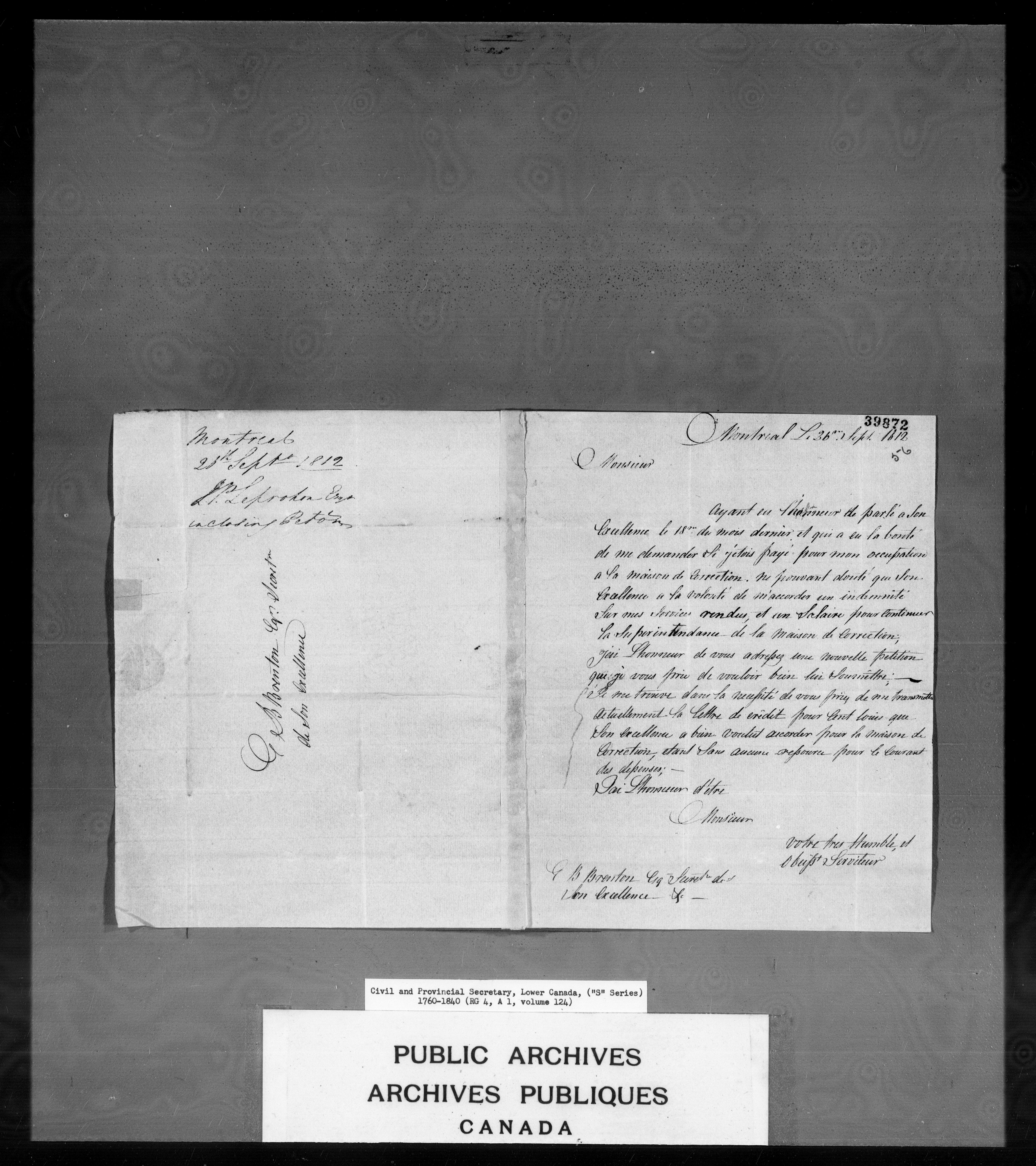Civil Secretary's correspondence : A1 -S Series, Quebec and Lower Canada, 1760-1840 - 3200