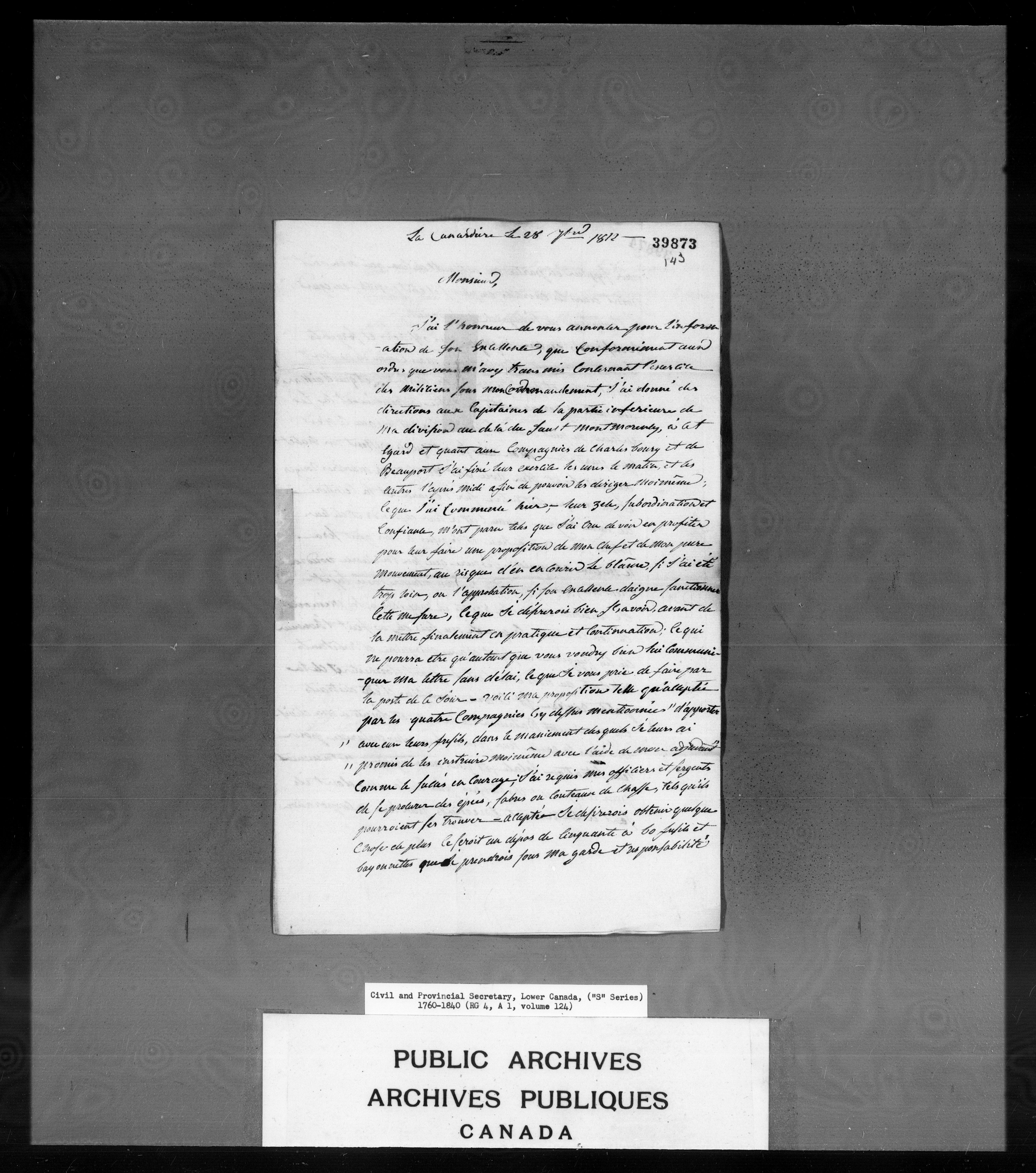 Civil Secretary's correspondence : A1 -S Series, Quebec and Lower Canada, 1760-1840 - 3200