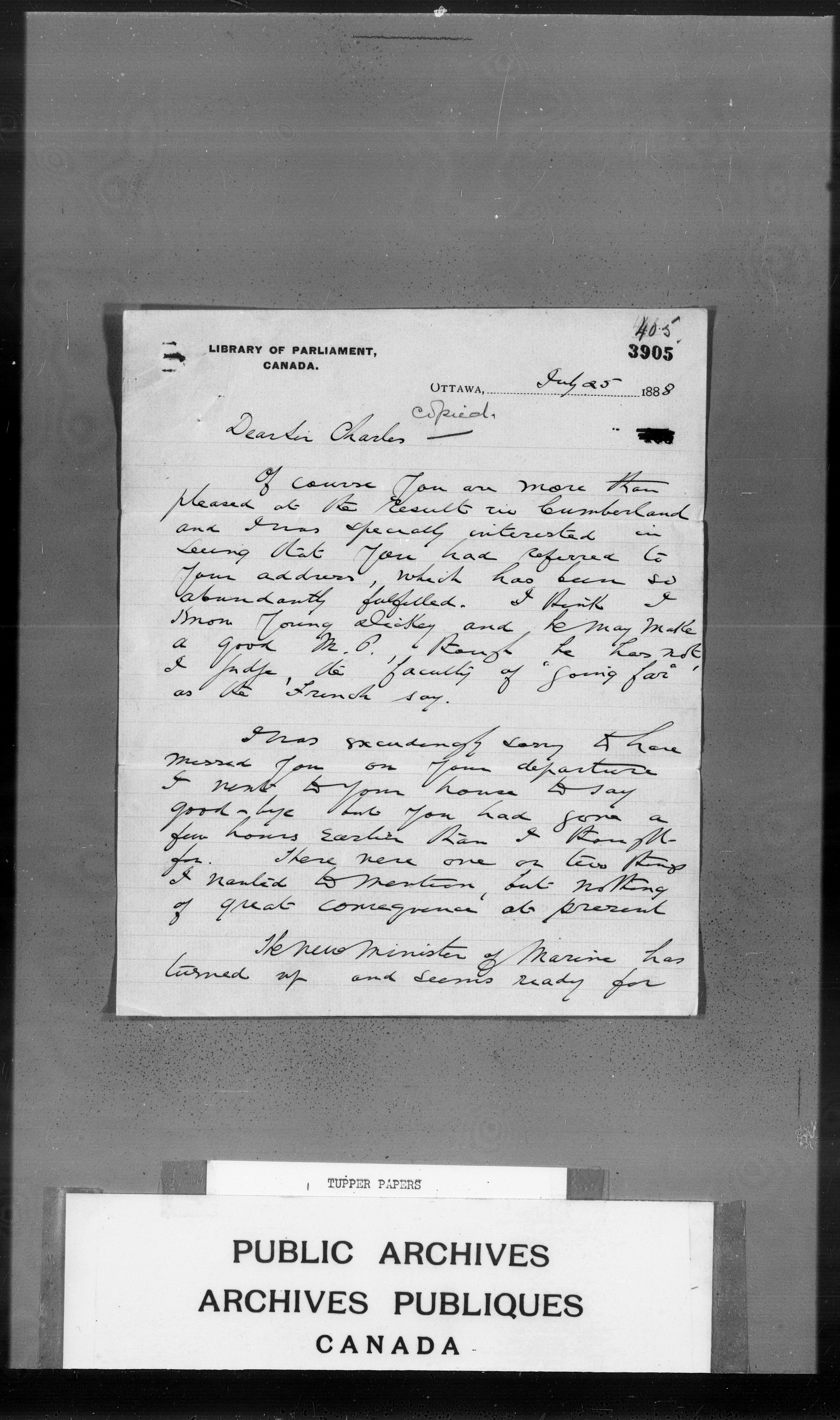Sir Charles Tupper : Political correspondence, letters received, 1840-1915 - 3205