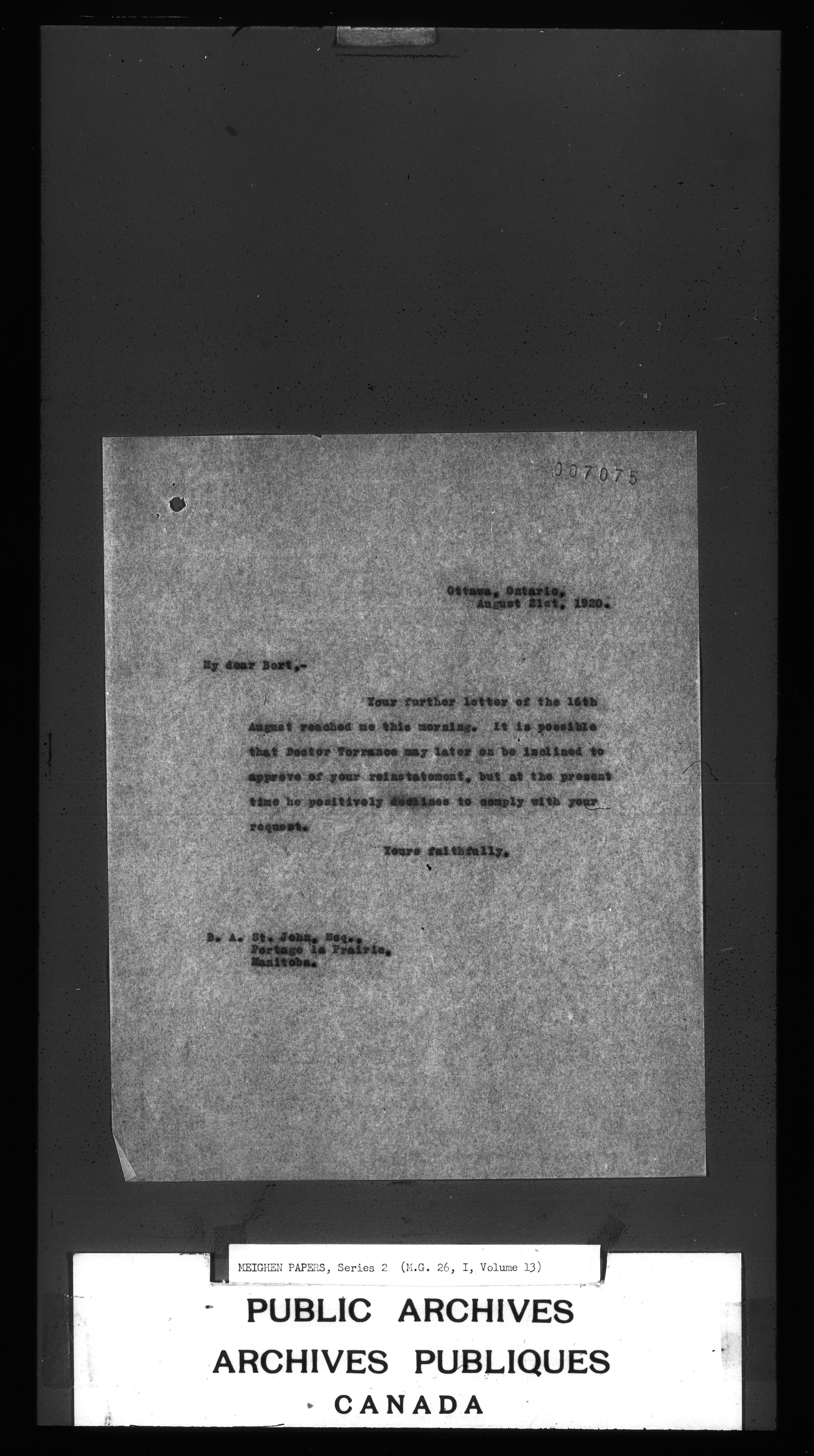 Arthur Meighen : Series 1, correspondence - 3218