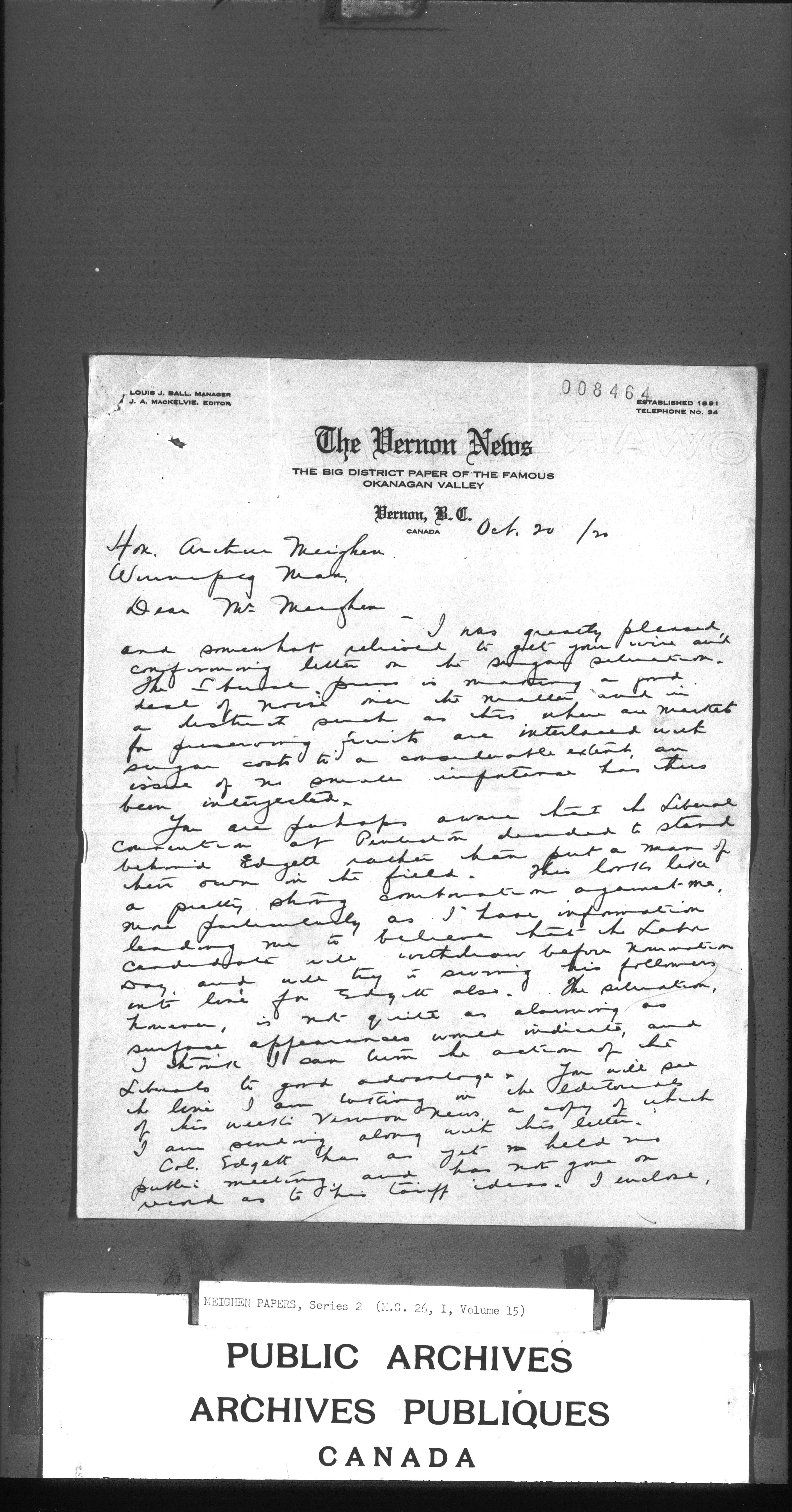 Arthur Meighen : Series 1, correspondence - 3219