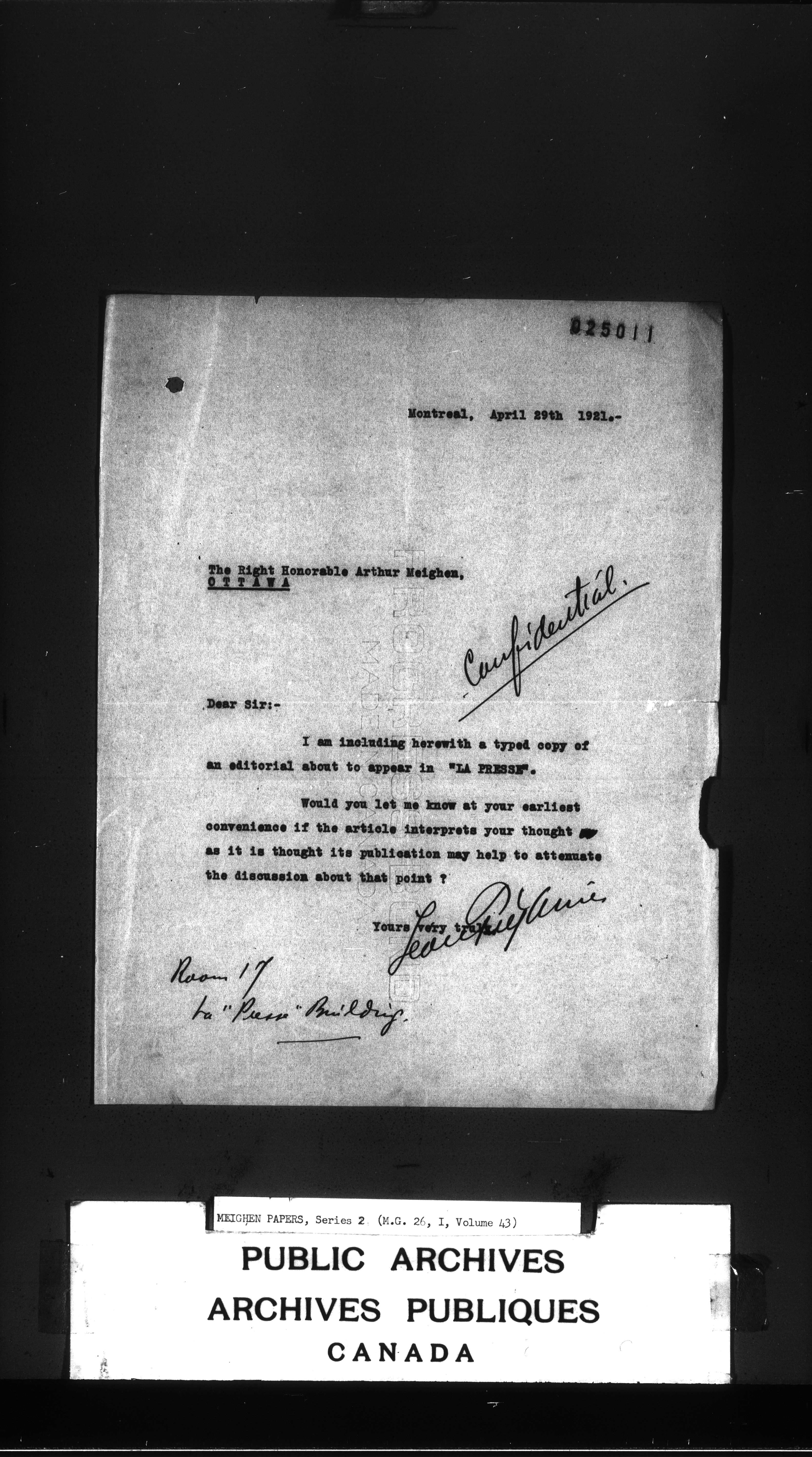 Arthur Meighen : Series 2, correspondence - 3429