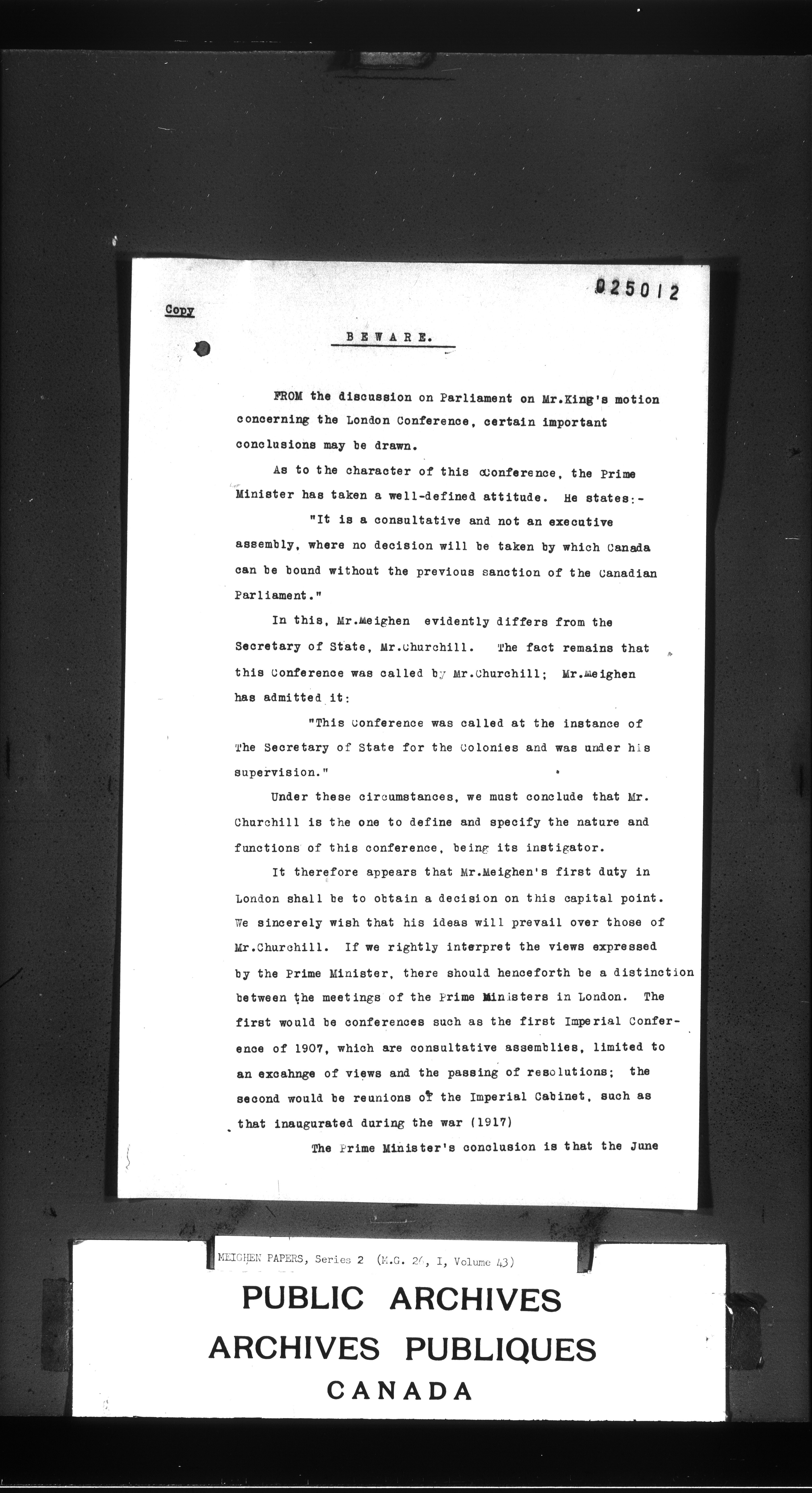 Arthur Meighen : Series 2, correspondence - 3429