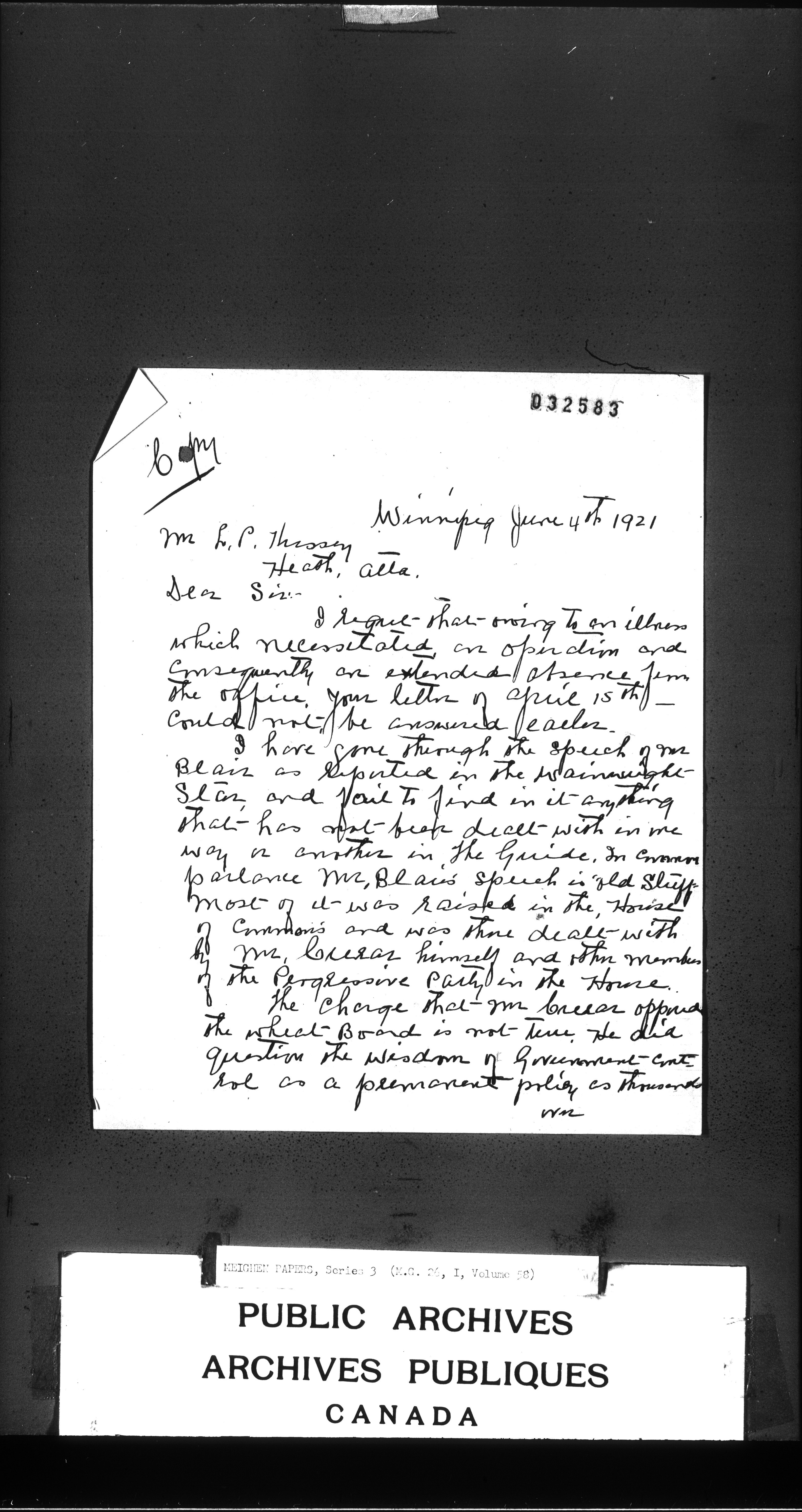 Arthur Meighen : Series 2, correspondence - 3436