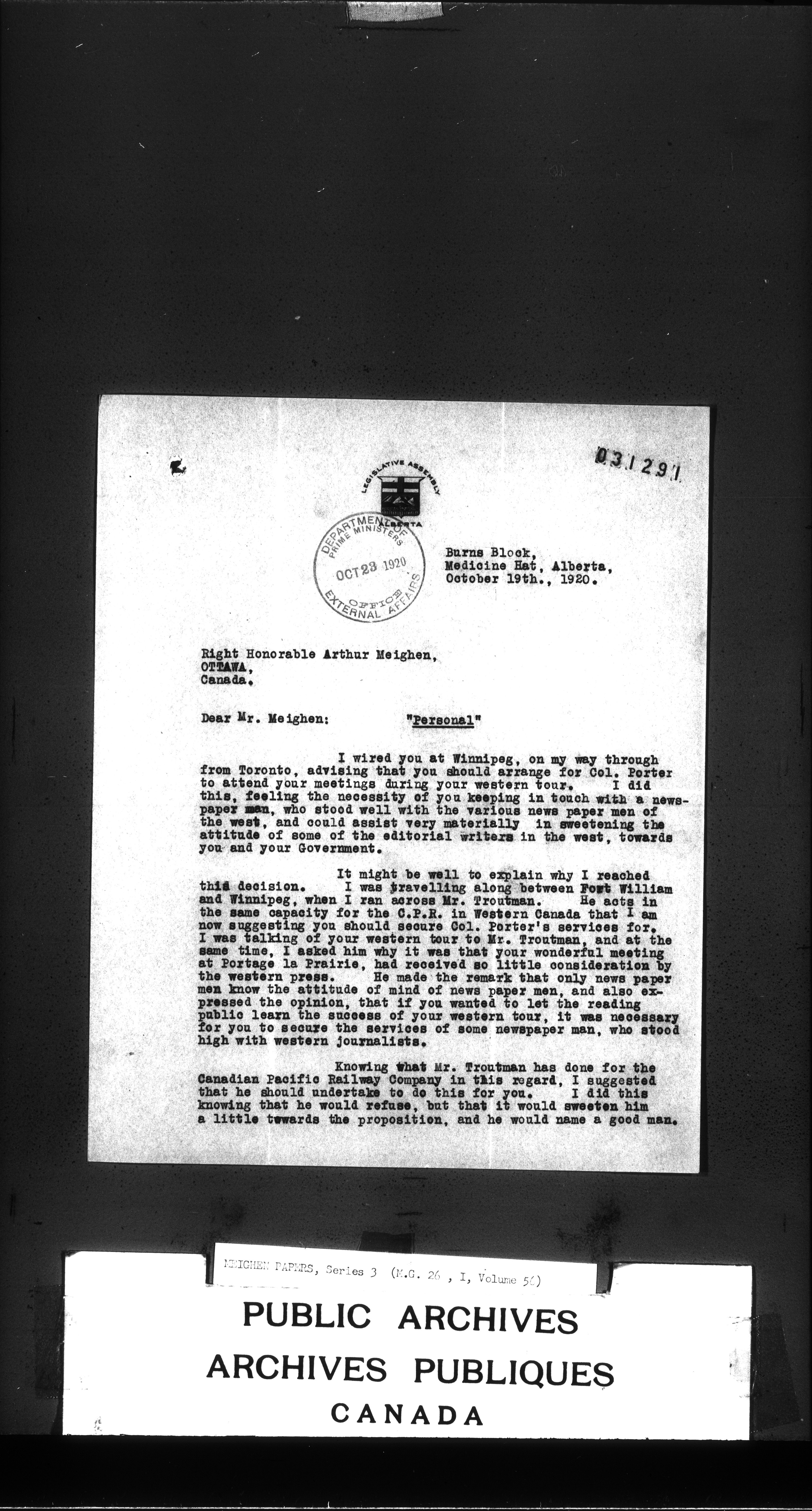 Arthur Meighen : Series 2, correspondence : C-3436