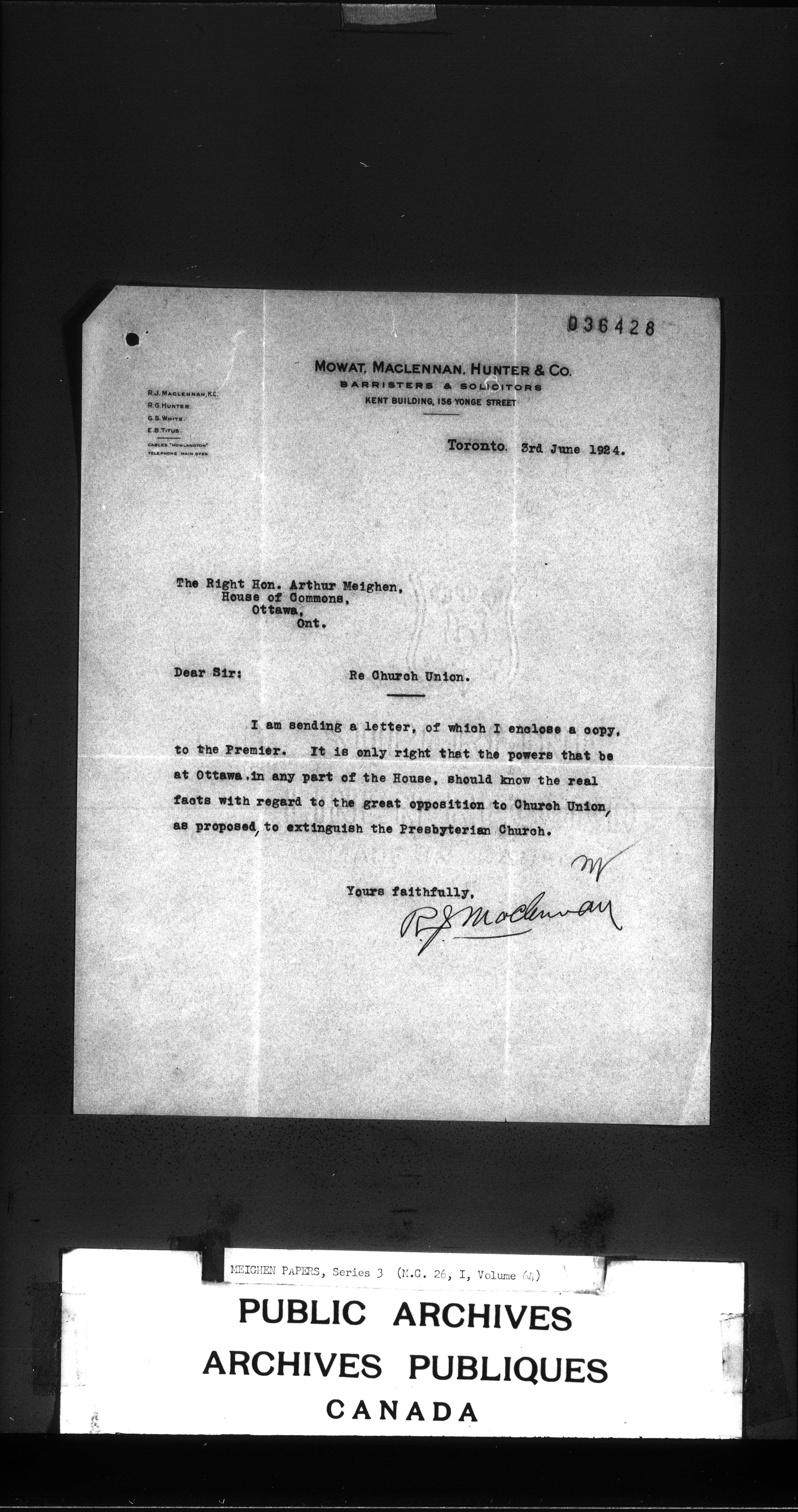 Arthur Meighen : Series 3, correspondence - 3439