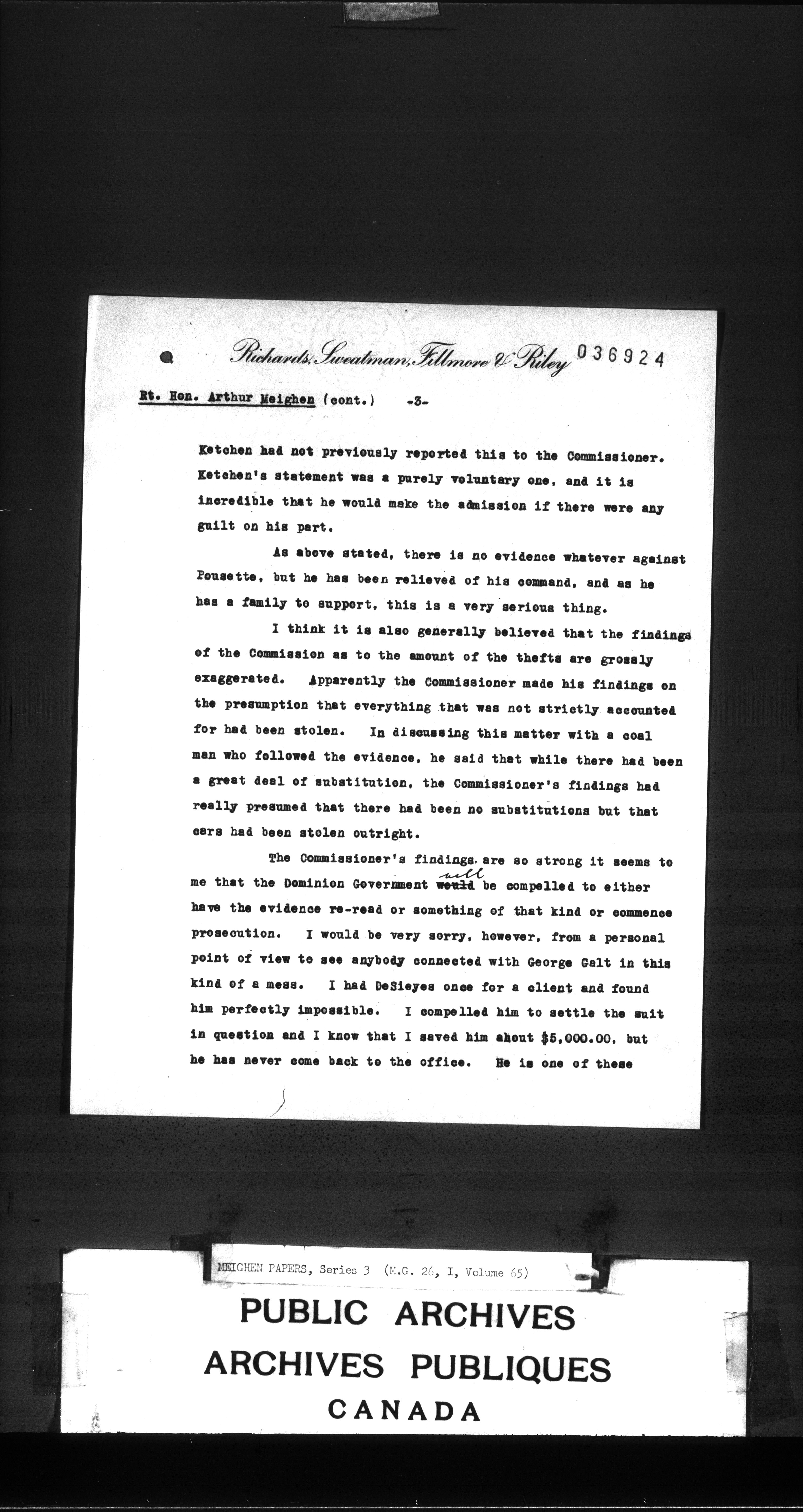 Arthur Meighen : Series 3, correspondence - 3440