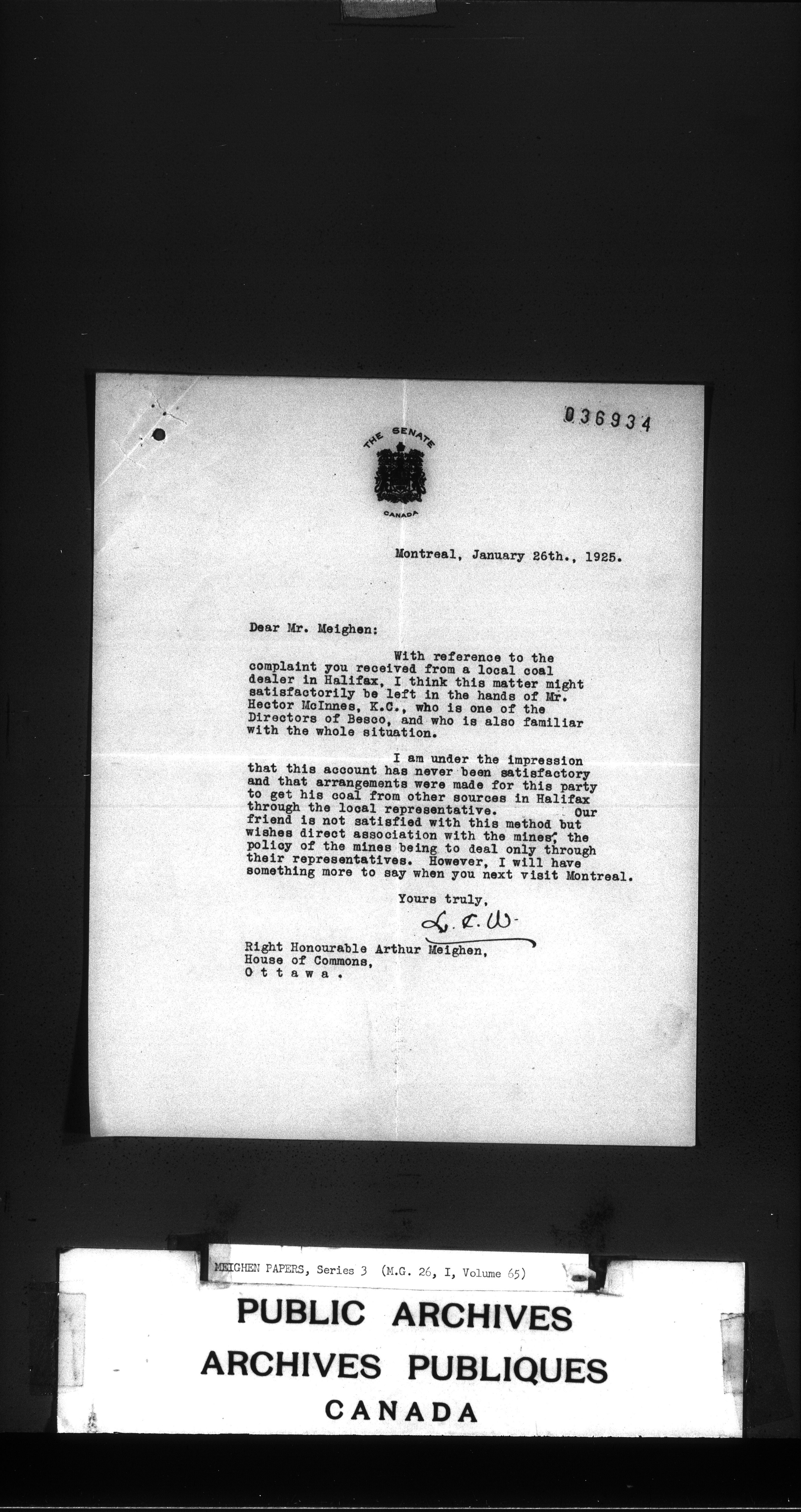 Arthur Meighen : Series 3, correspondence - 3440