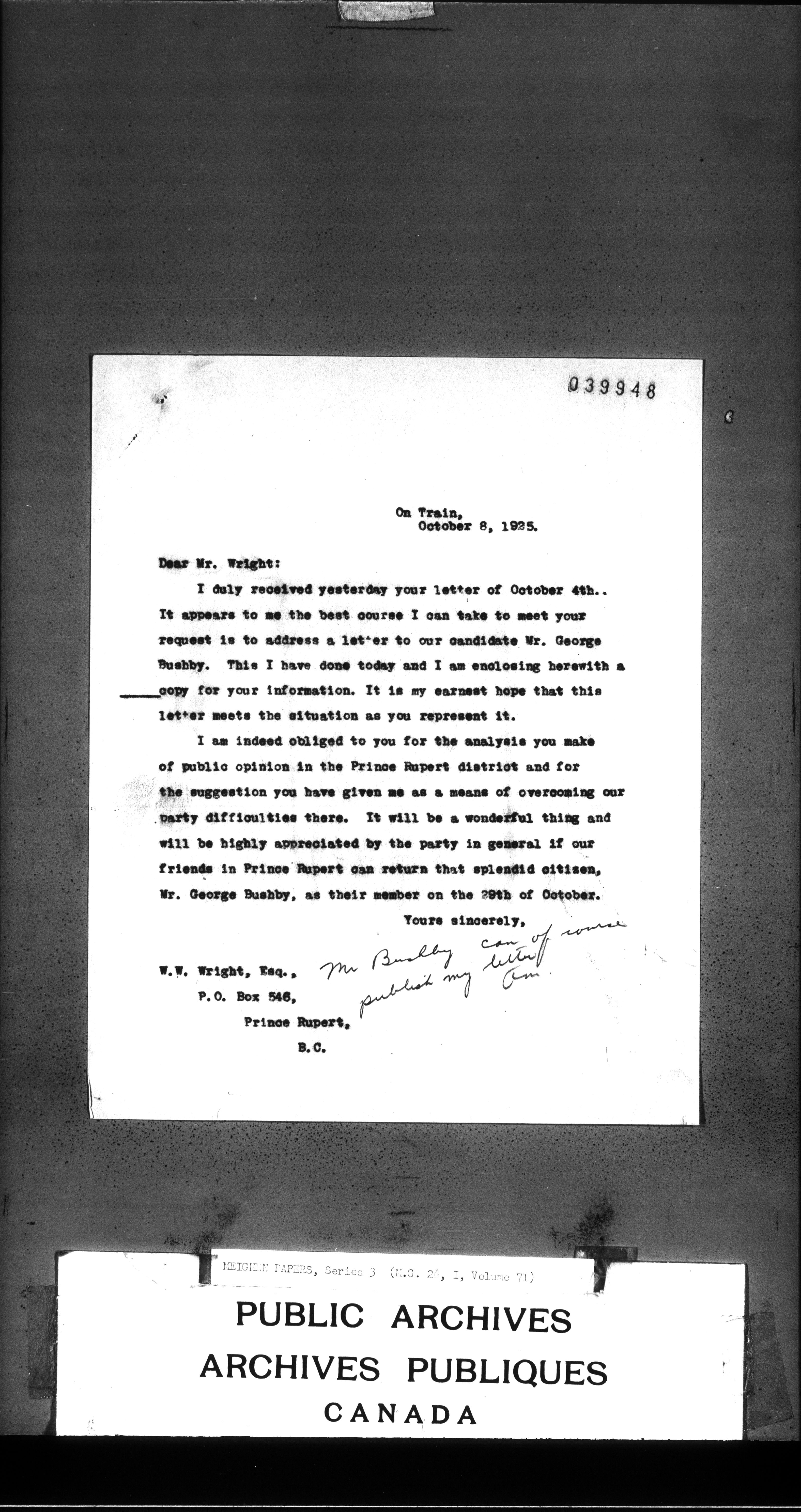 Arthur Meighen : Series 3, correspondence - 3443