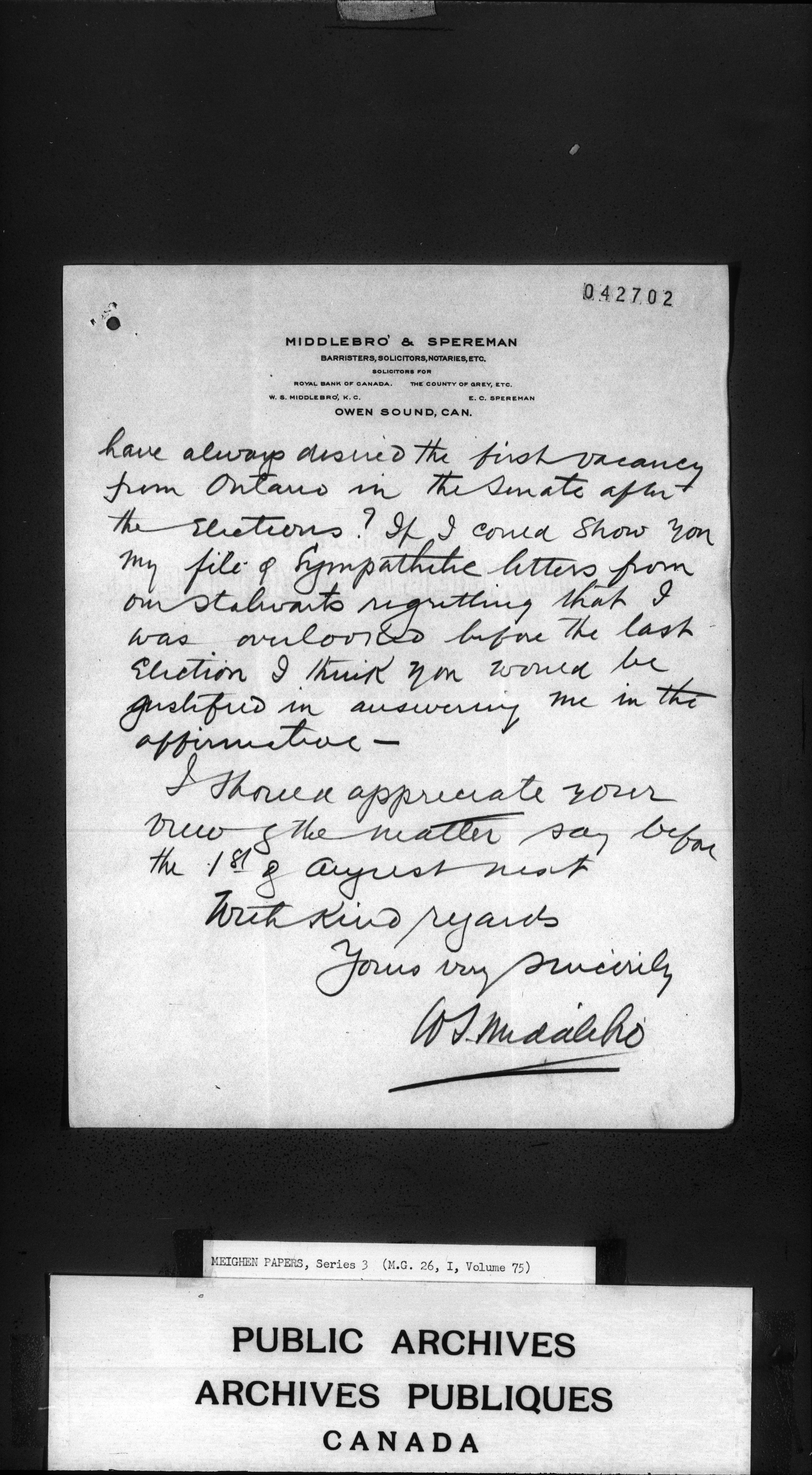 Arthur Meighen : Series 3, correspondence - 3445