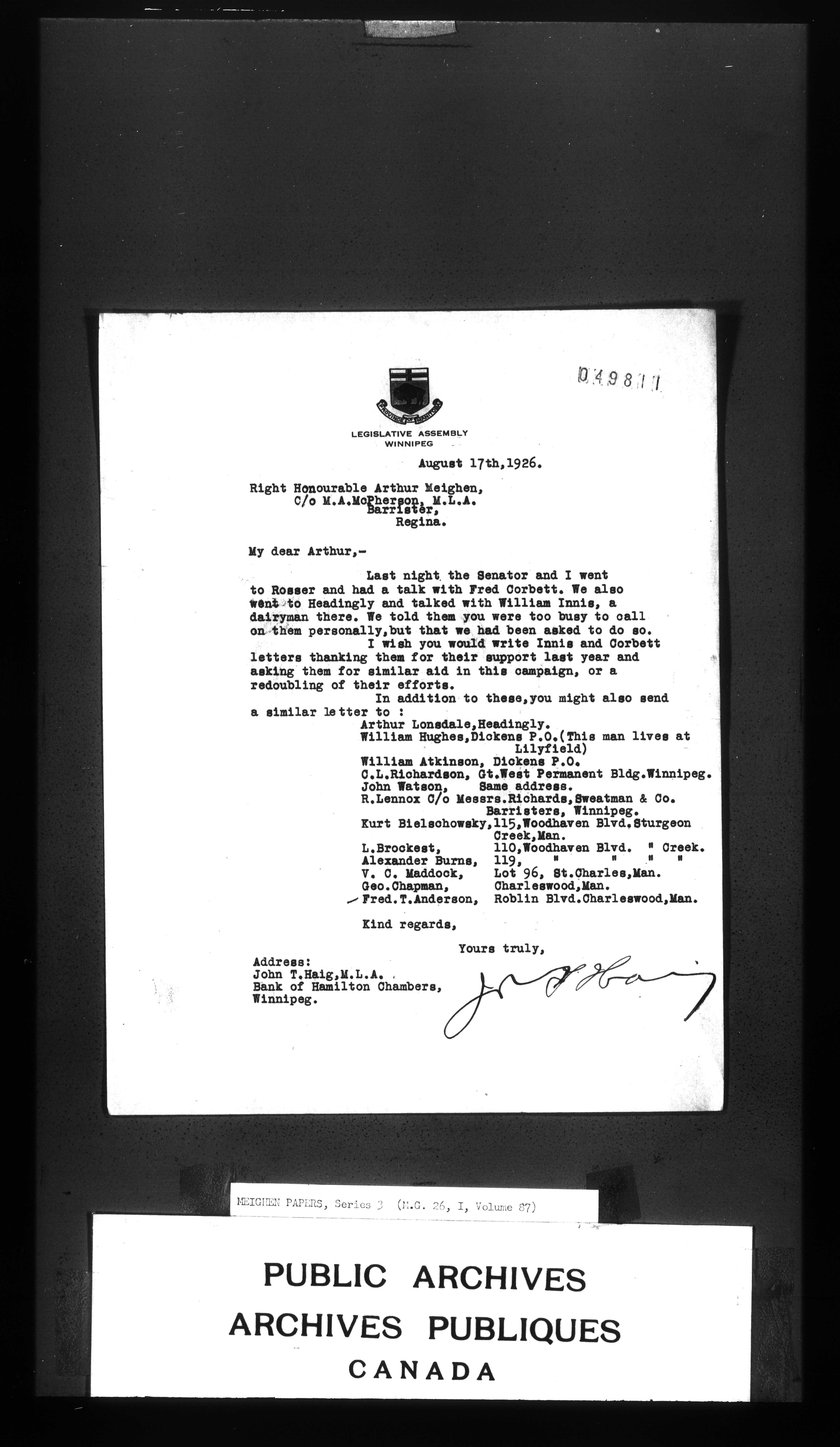 Arthur Meighen : Series 3, correspondence - 3449