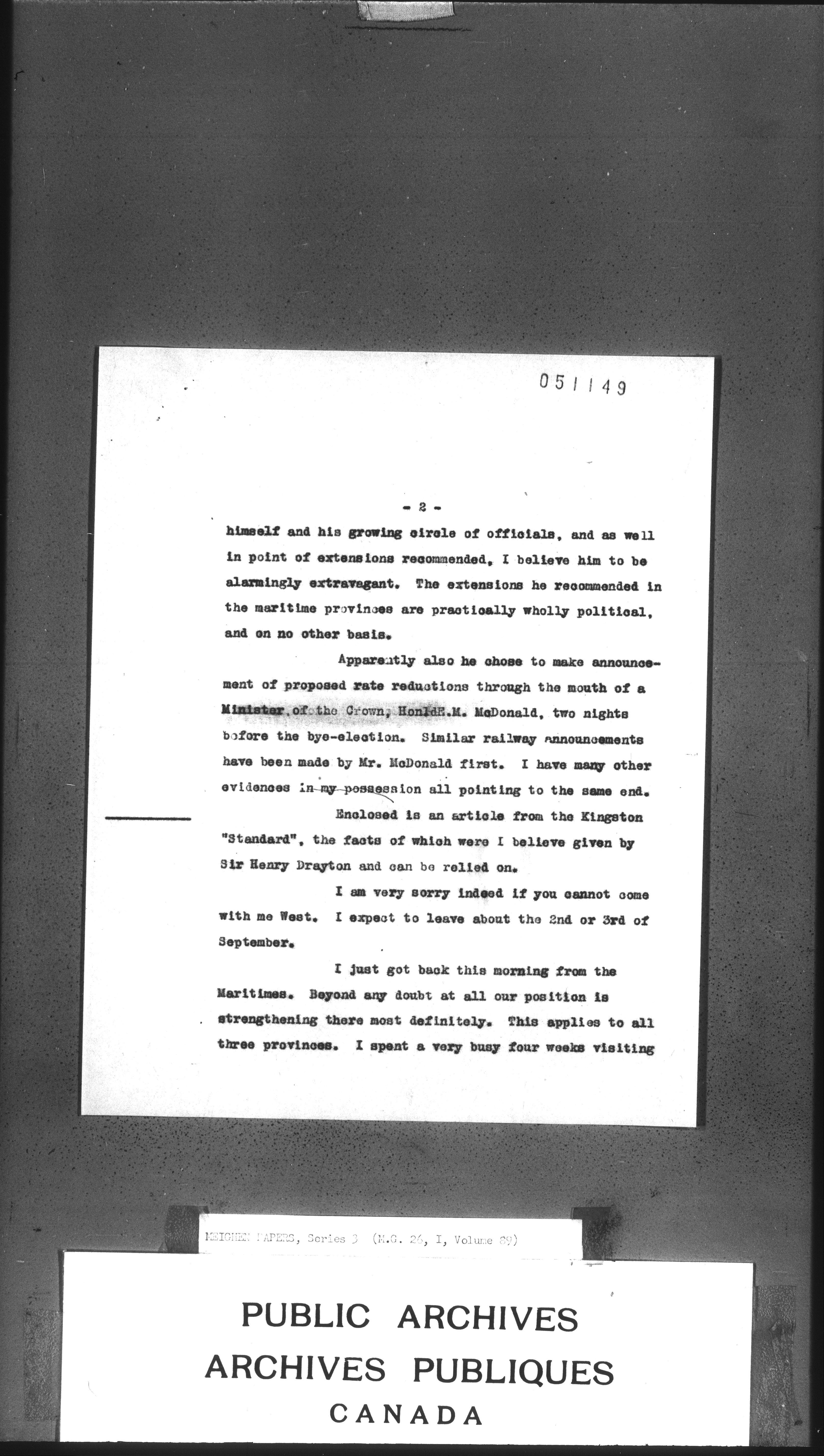 Arthur Meighen : Series 3, correspondence - 3450