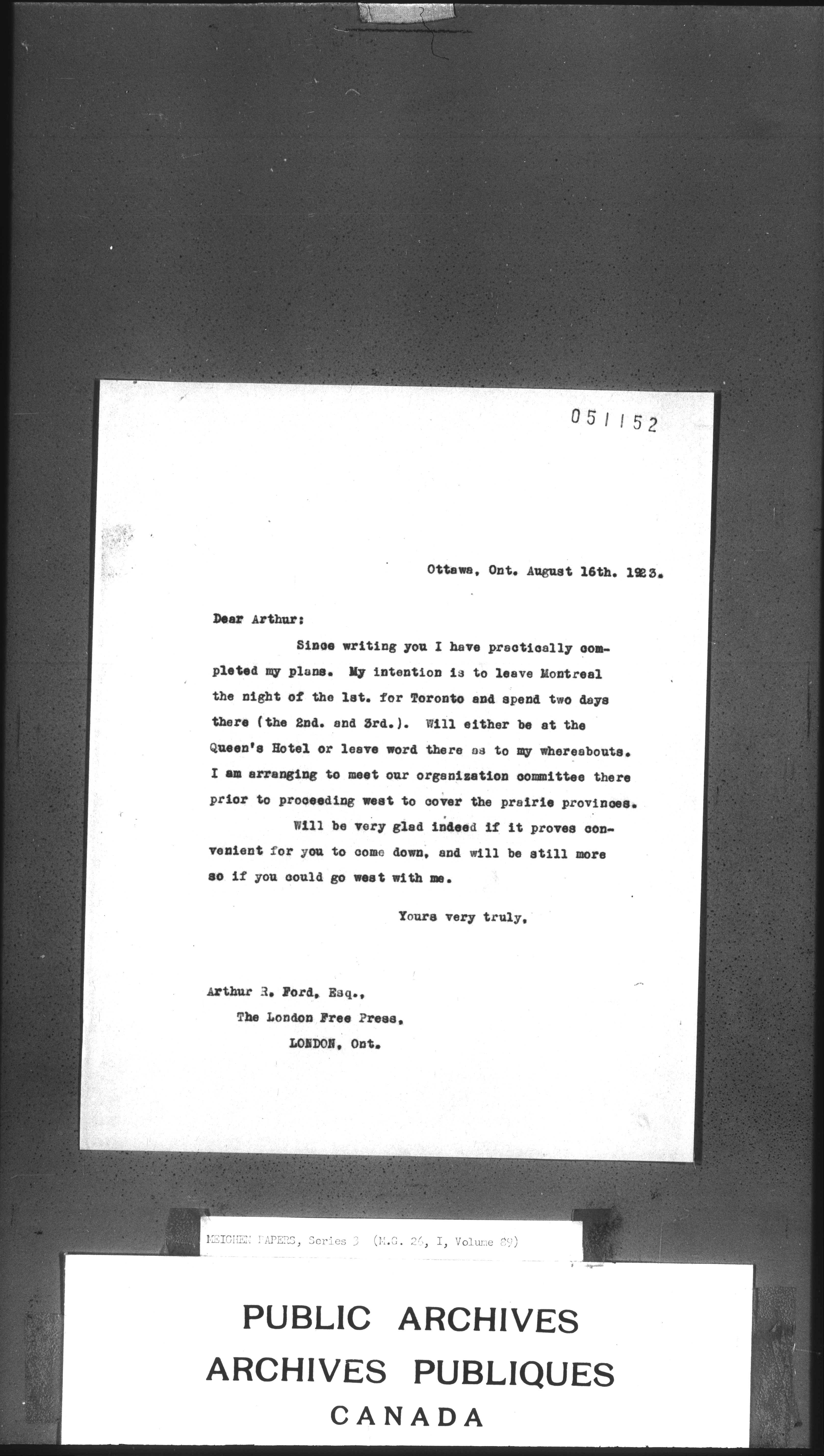 Arthur Meighen : Series 3, correspondence - 3450