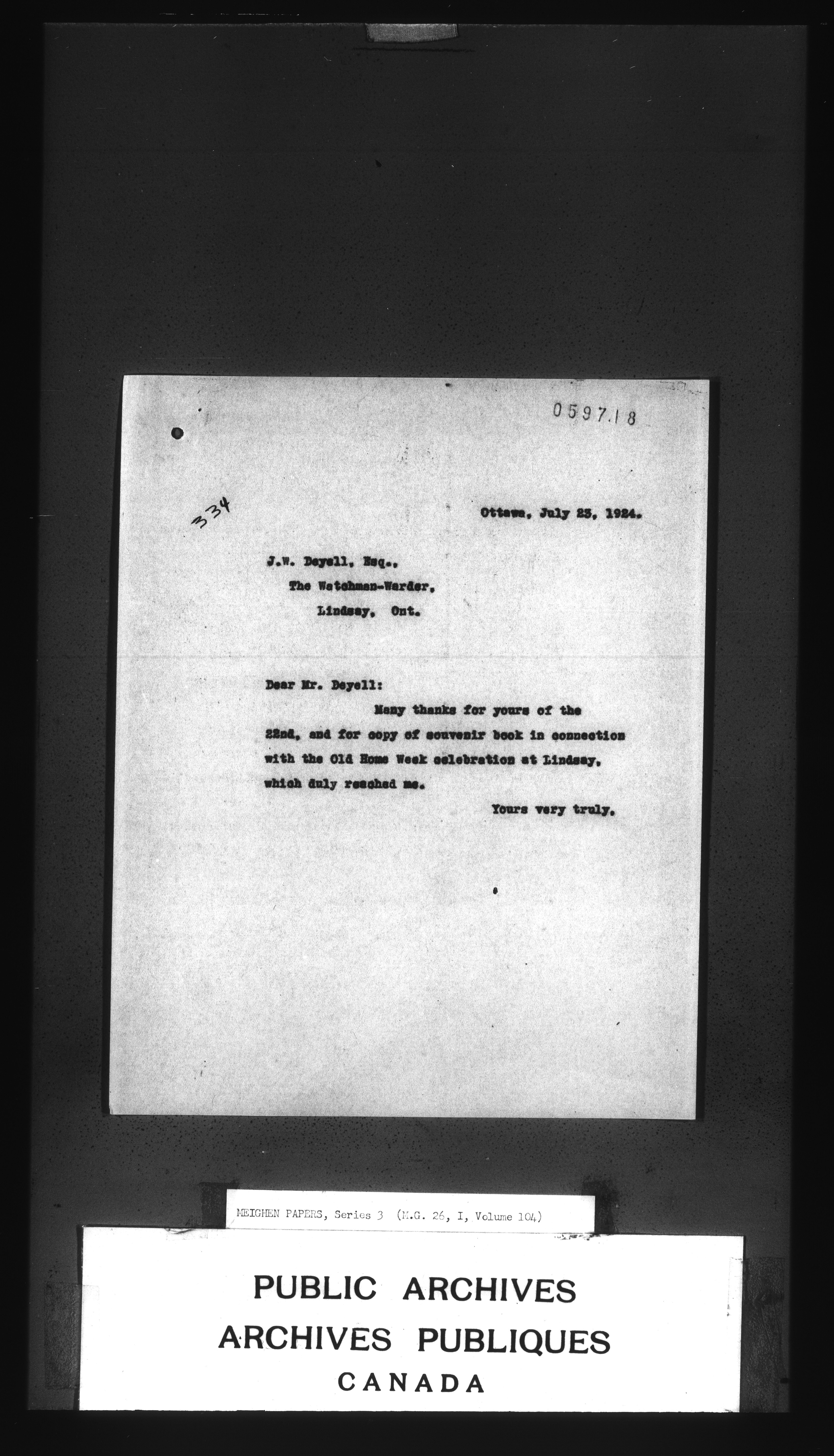 Arthur Meighen : Series 3, correspondence - 3458