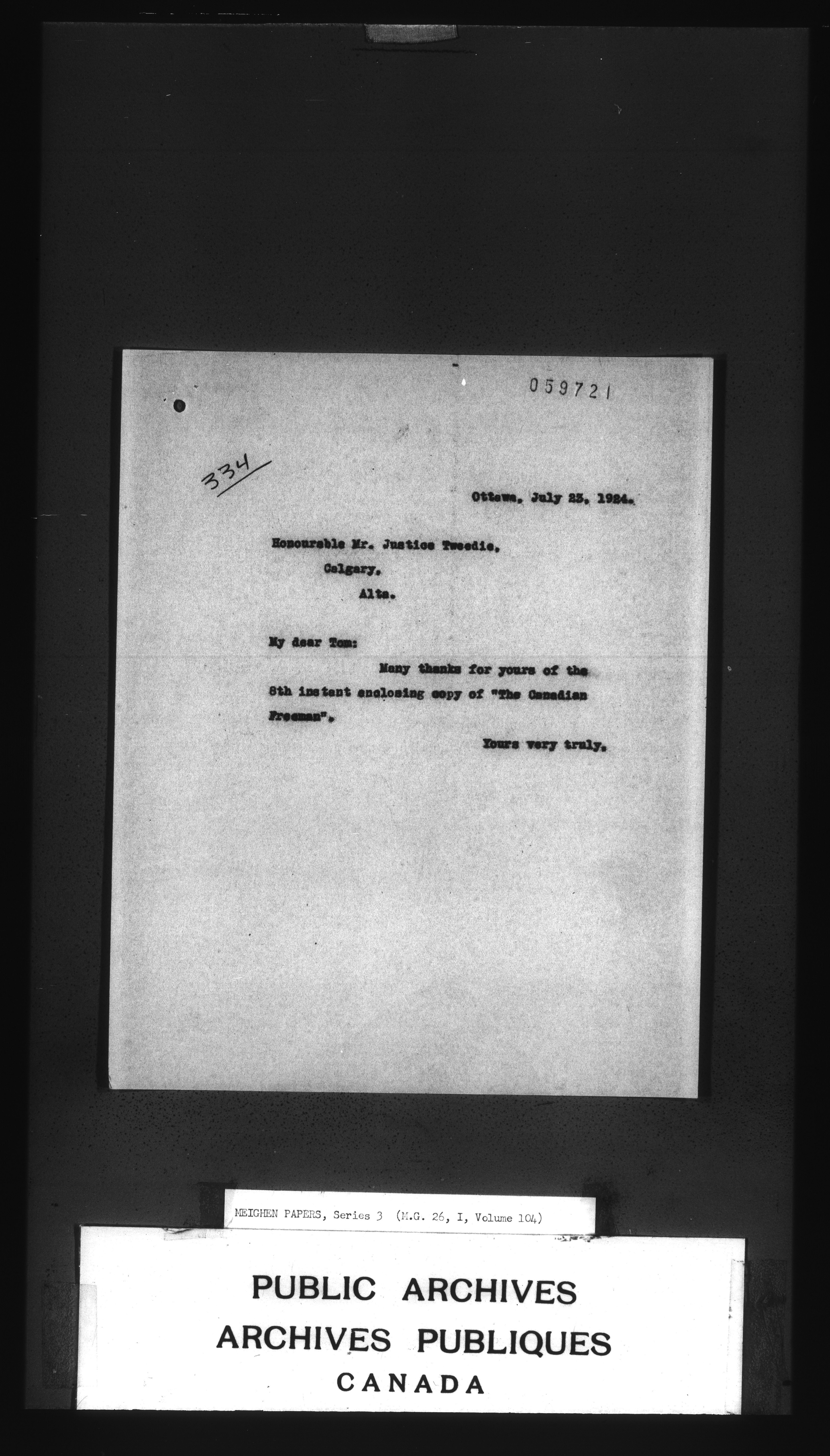 Arthur Meighen : Series 3, correspondence - 3458
