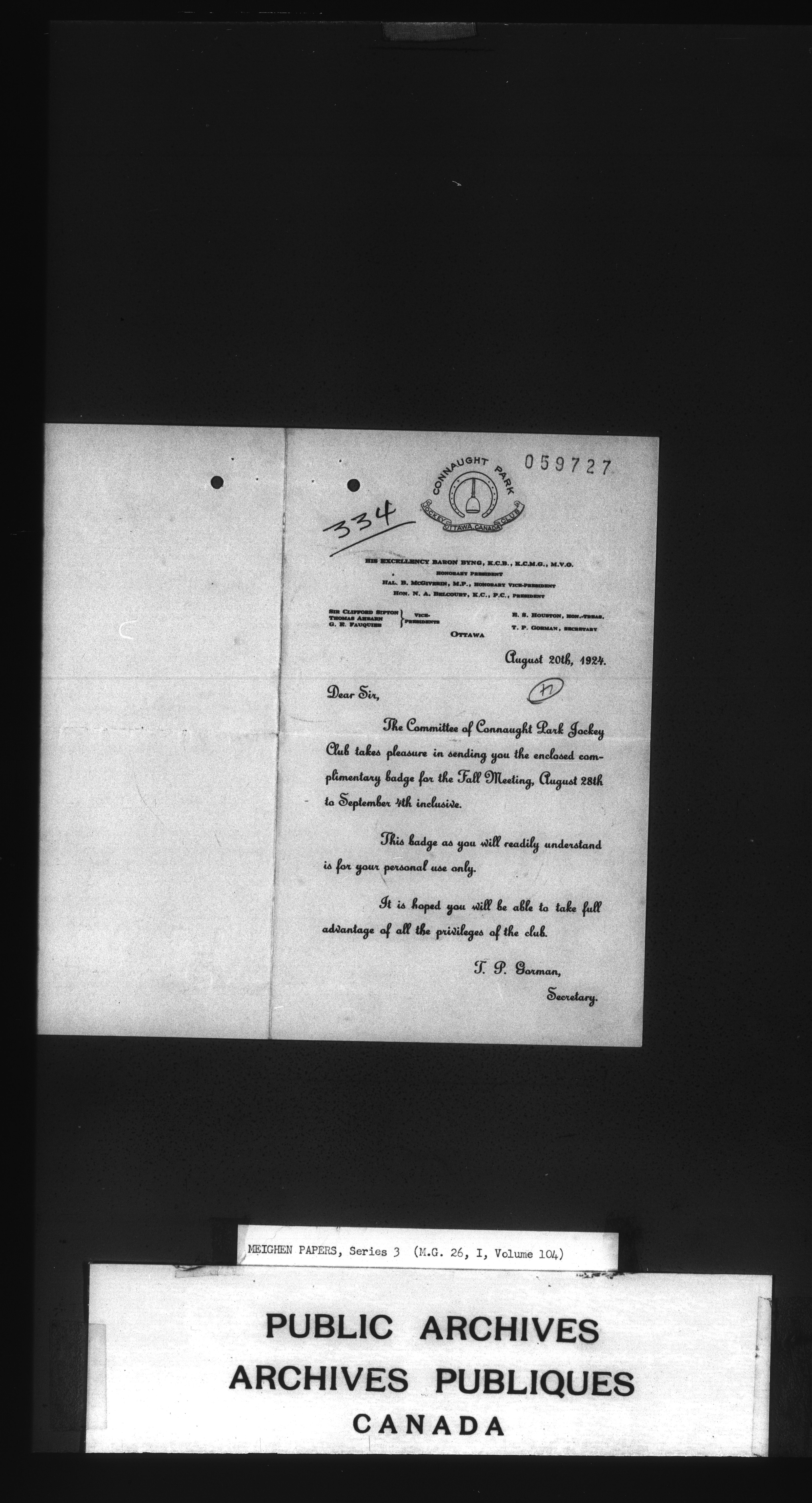 Arthur Meighen : Series 3, correspondence - 3458