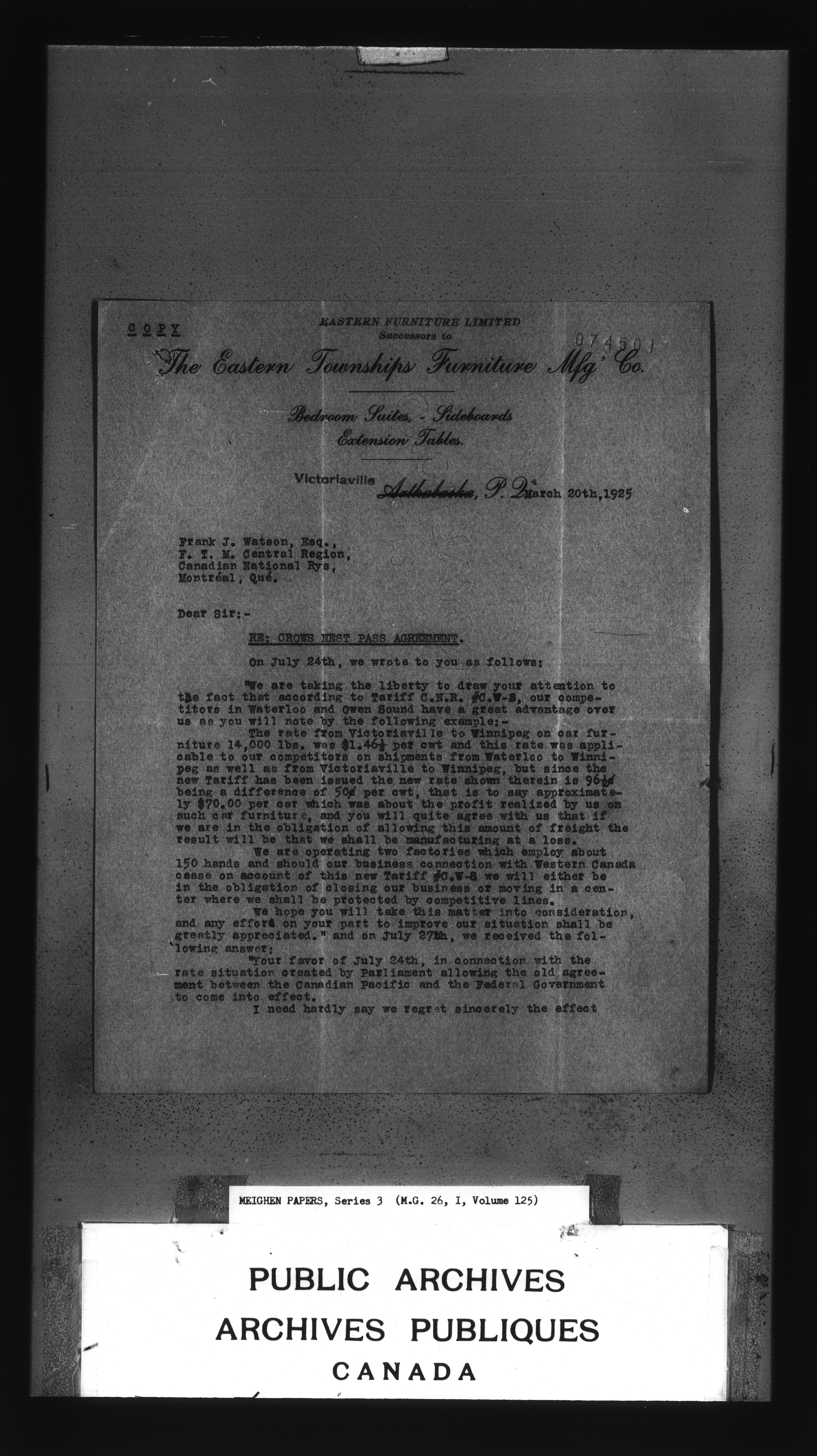 Arthur Meighen : Series 3, correspondence : C-3469