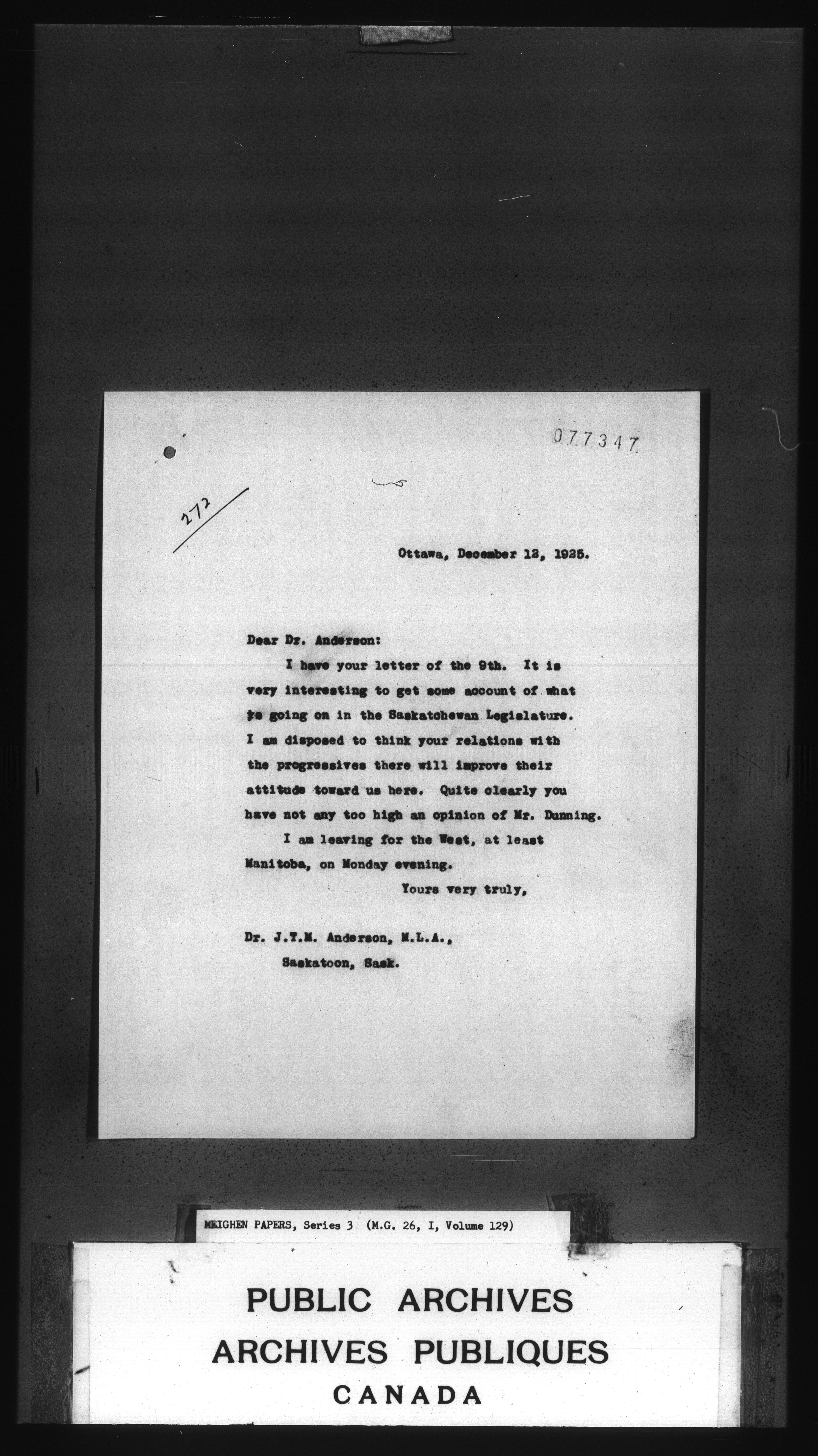 Arthur Meighen : Series 3, correspondence : C-3472