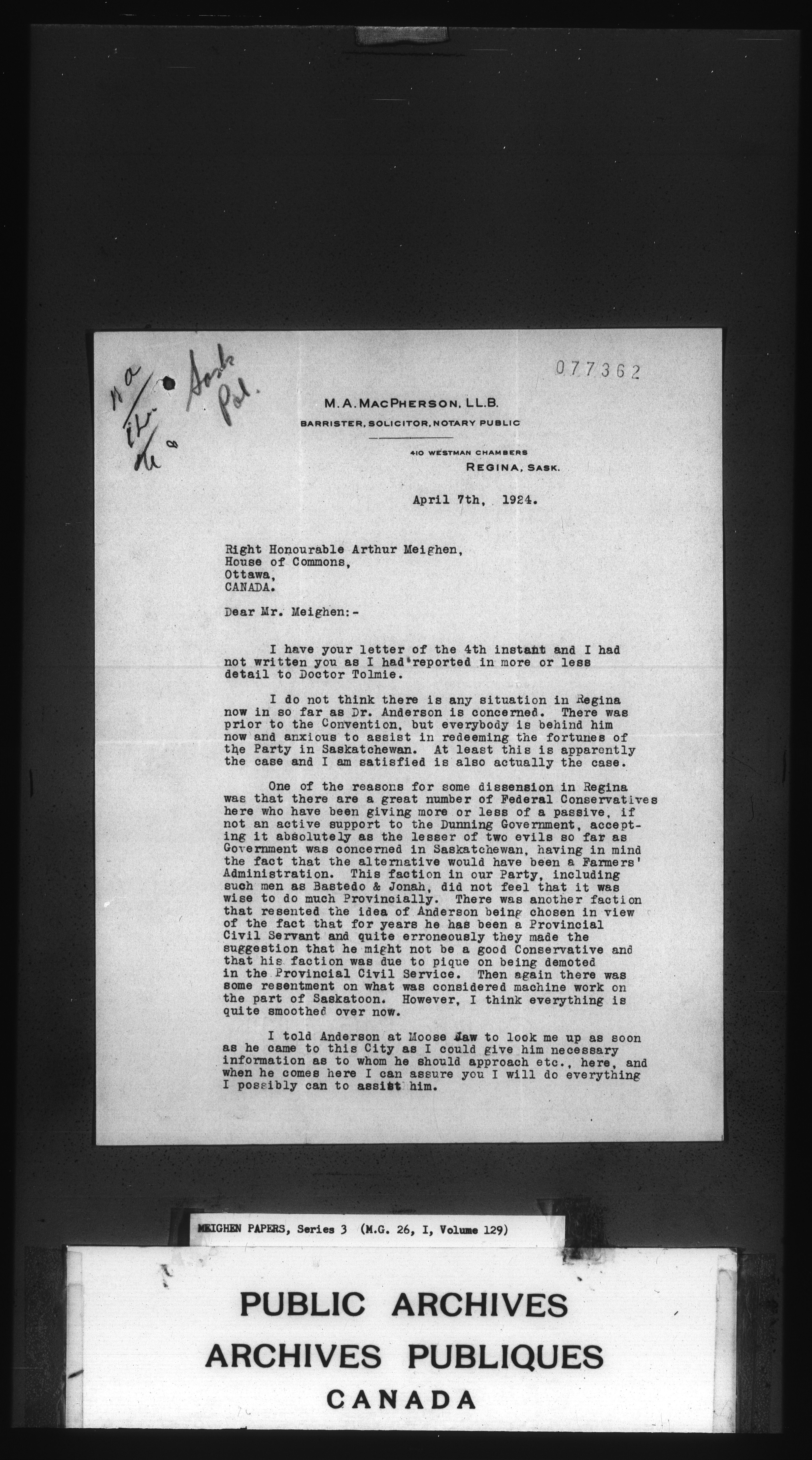 Arthur Meighen : Series 3, correspondence : C-3472