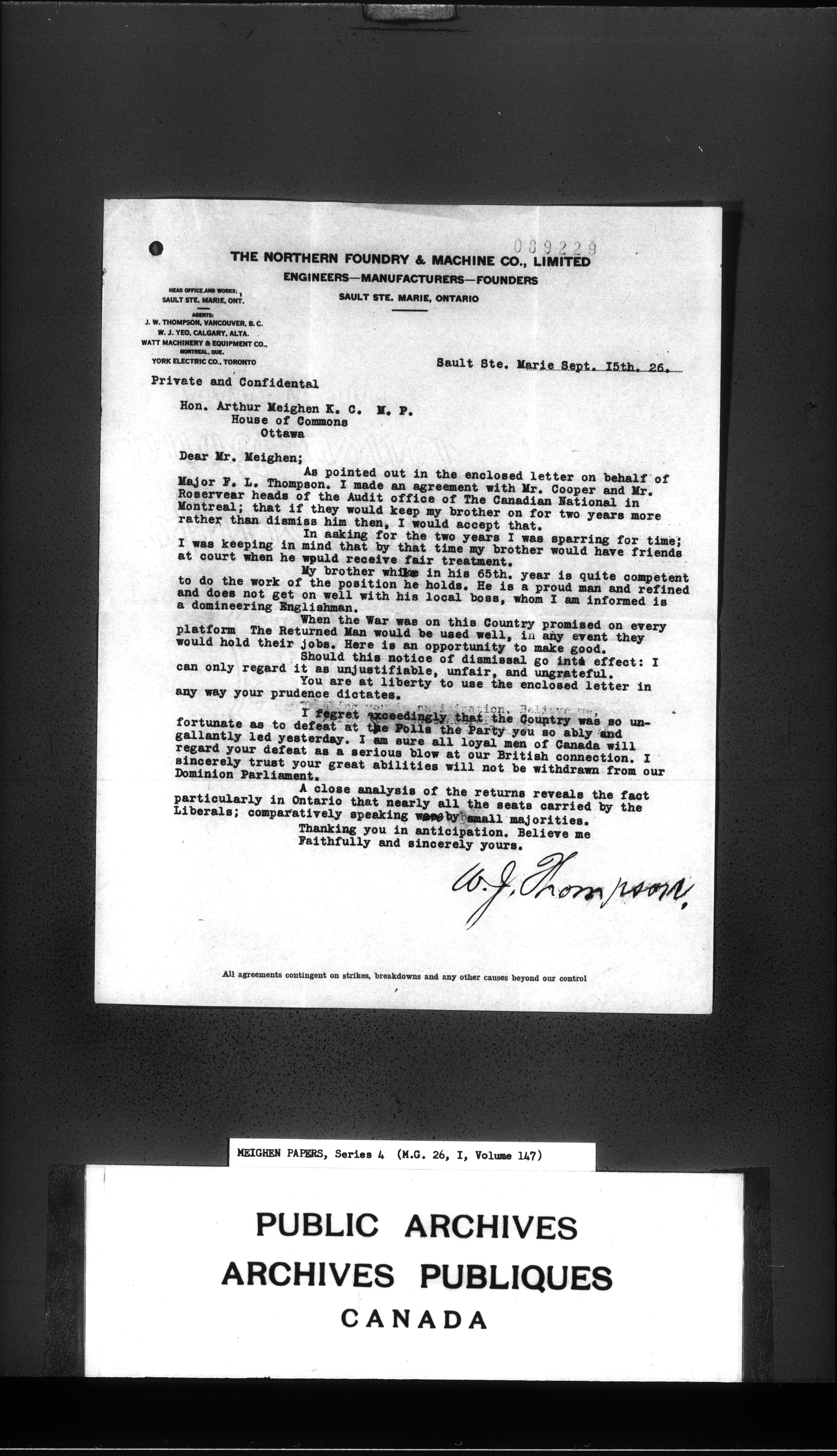 Arthur Meighen : Series 4, correspondence - 3551