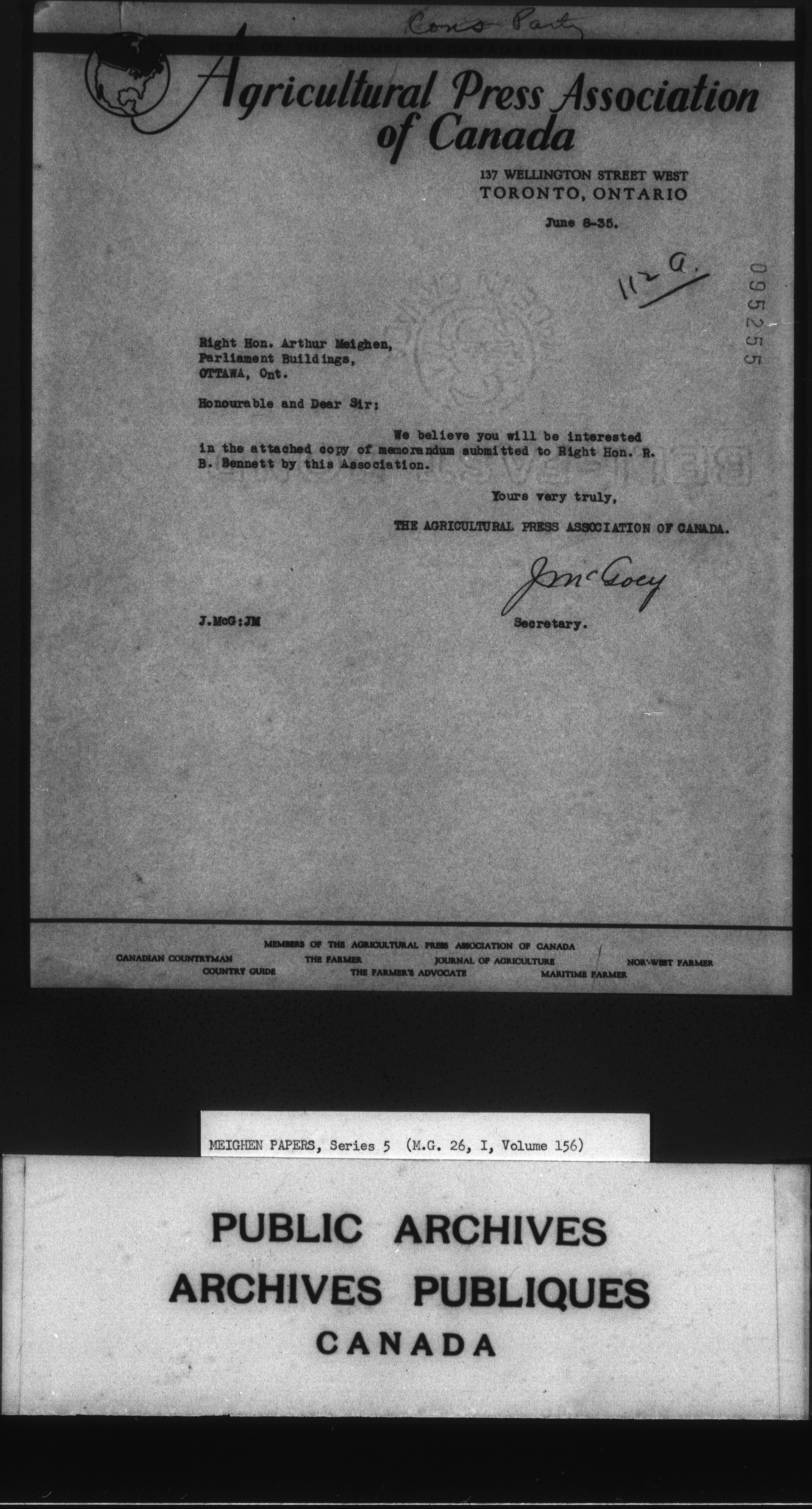 Arthur Meighen : Series 5, correspondence - 3556
